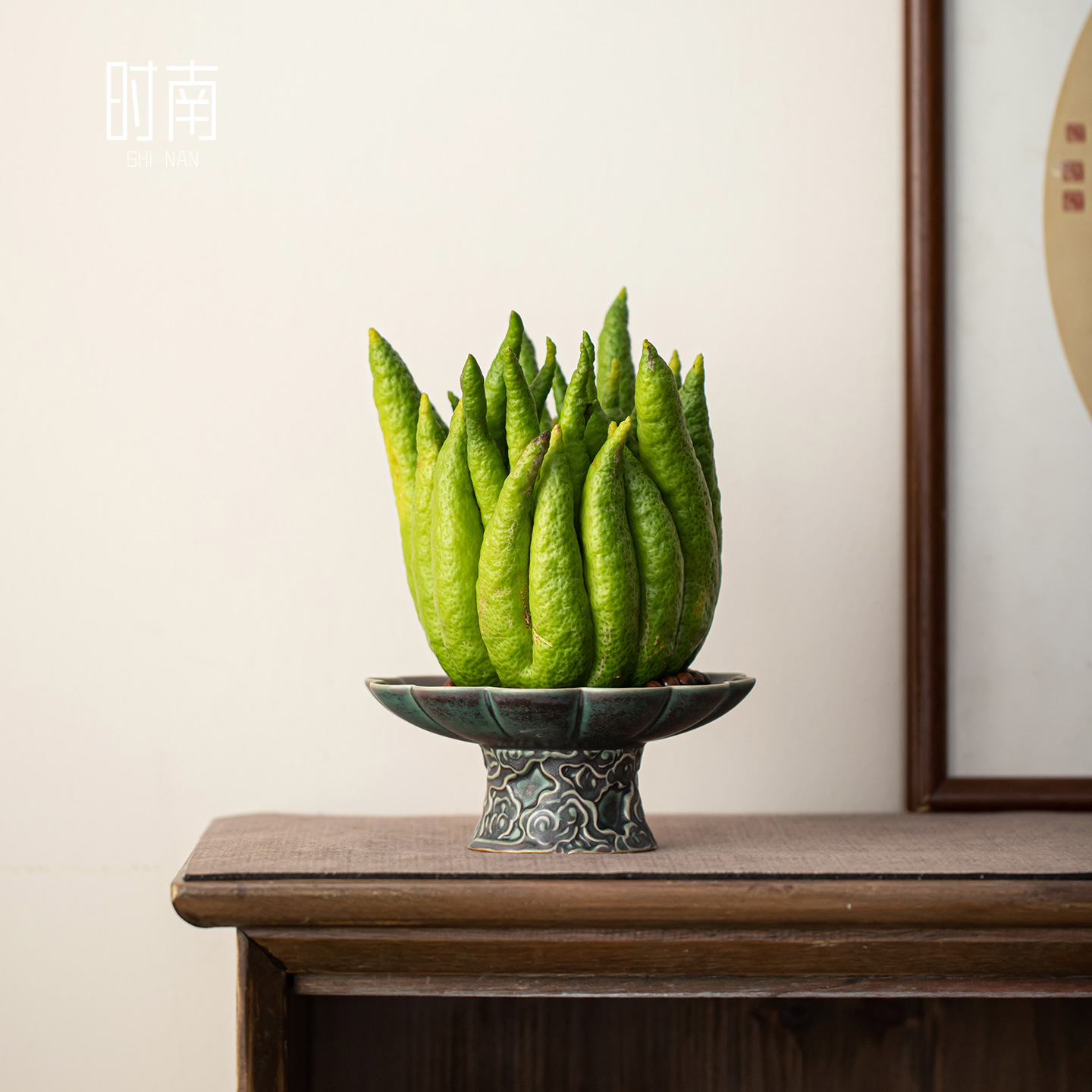 中式复古佛手柑高脚盘放佛手果的陶瓷托盘佛手清供闻香供盘摆放盘