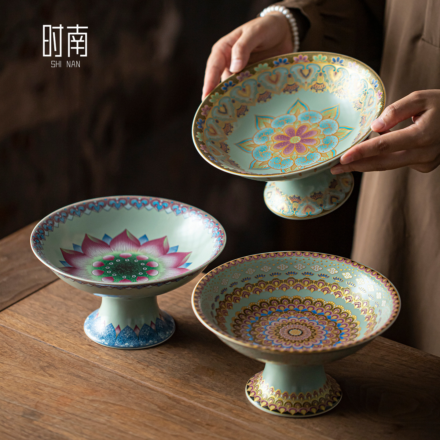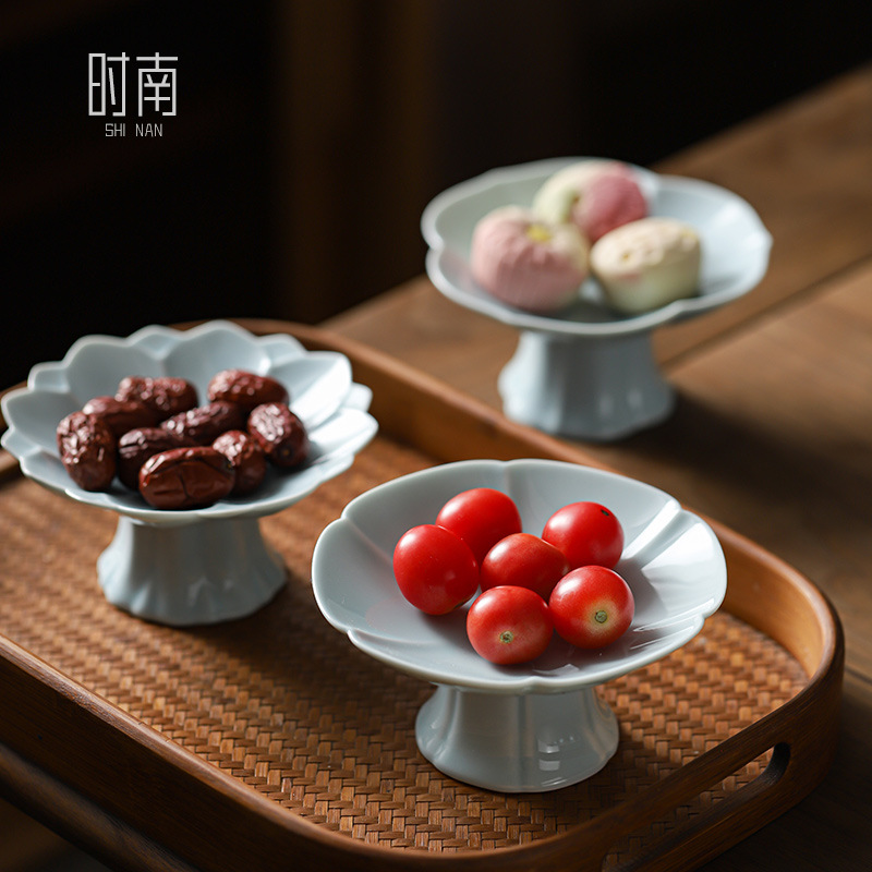 セラミック中国風の背の高いティートレイ、レトロな背の高いスナックトレイ、家庭用の絶妙なフルーツトレイ、ベルガモットトレイ
