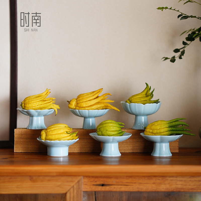 中式高颜值佛手柑托盘陶瓷高脚佛手瓜摆放盘佛手观赏清供专用器皿