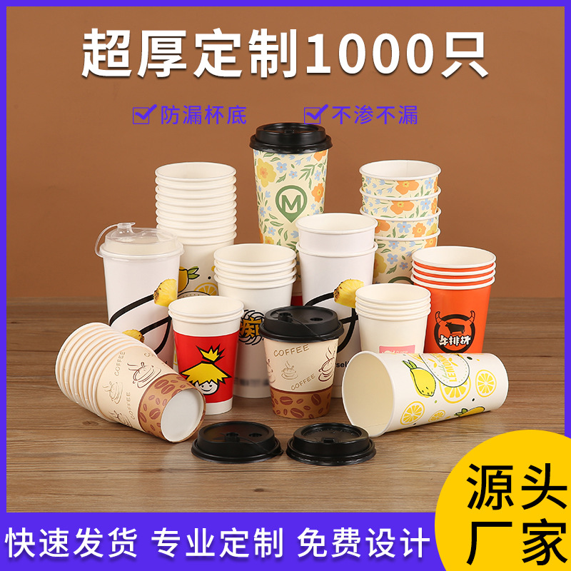 使い捨て豆乳カップ商用蓋付きパーマ紙コップ厚さ二重中空カップカラー印刷パターンロゴ