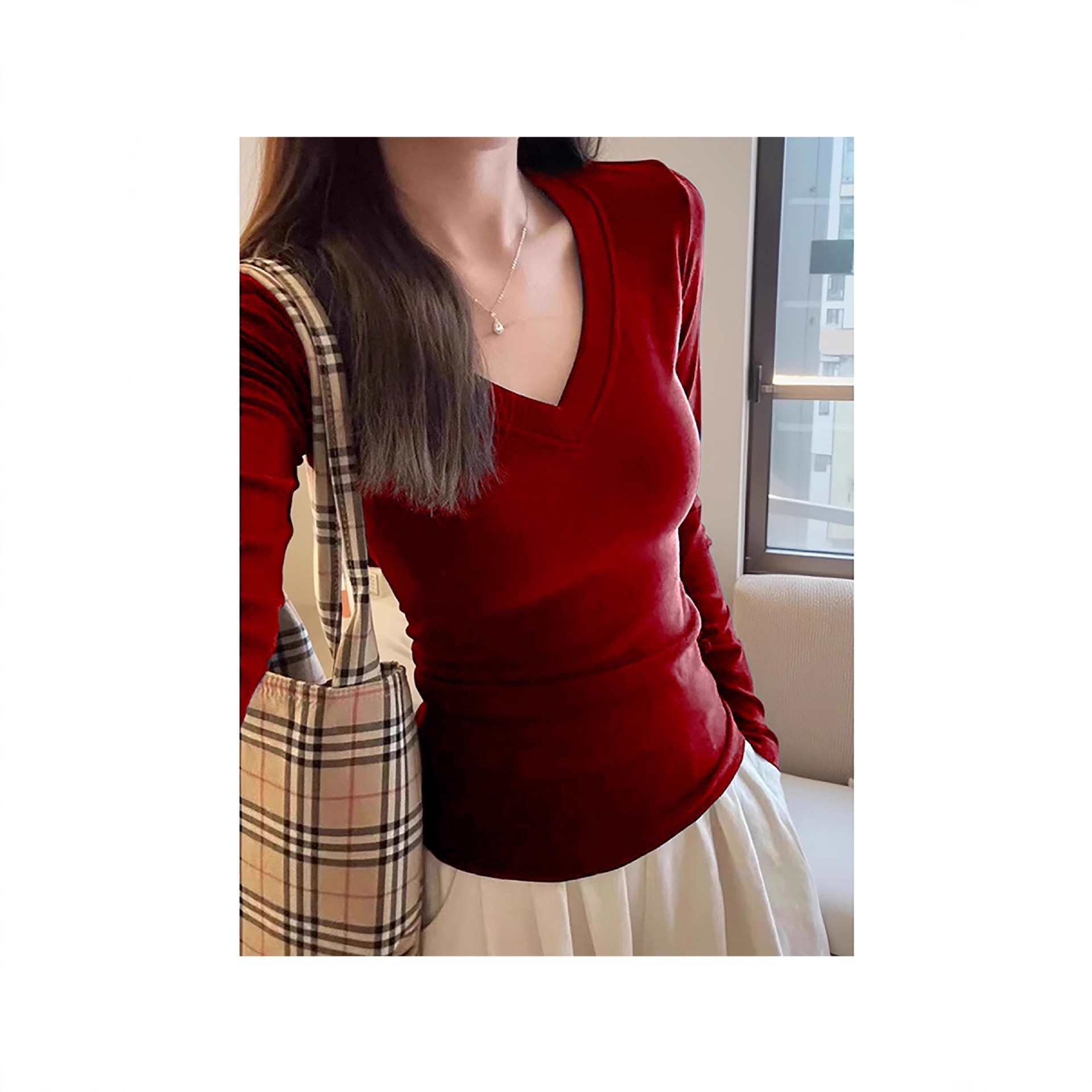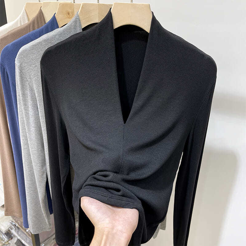 V领打底衫女内搭长袖修身显瘦低领上衣春秋外穿紧身