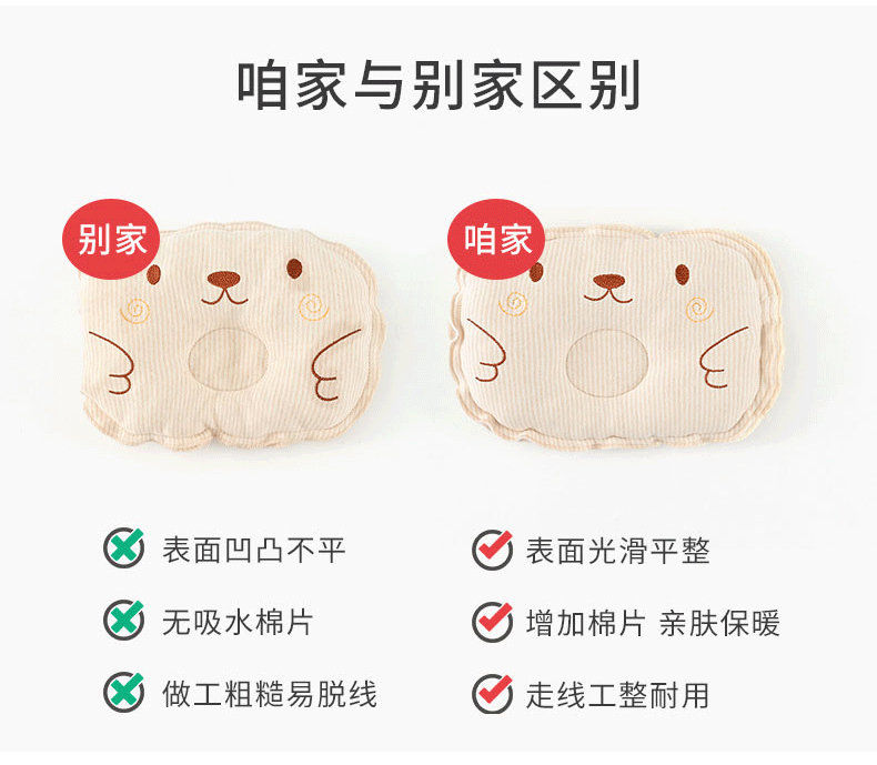 カラー綿ベビー枕 0-6ヶ月 新生児用整形枕 A級 クロスボーダー工場直送枕芯