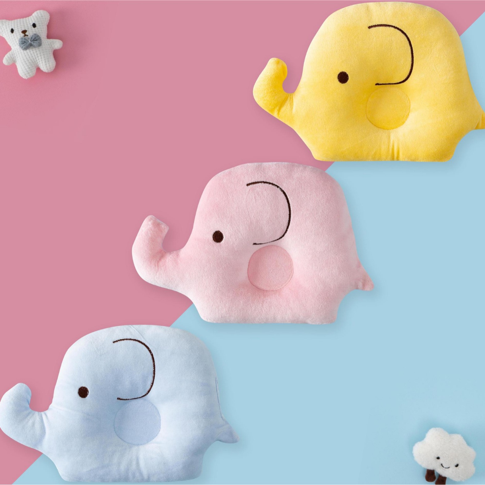 天鹅绒0-1岁新生宝宝枕头小象卡通宝宝枕头舒适保暖适用于秋冬季