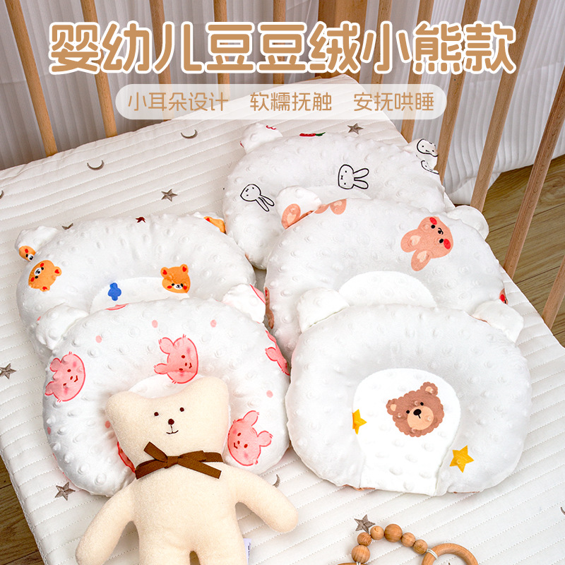 新生児用整形枕、豆豆ベルベット素材、幼児用偏心防止枕、四季通用枕、0-3歳向け、調節可能