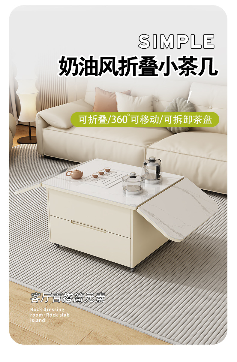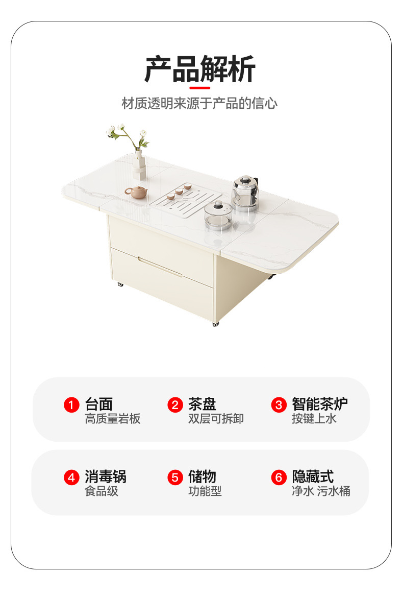 岩板工夫茶数客間2024年新型プーリ移動折り畳み全自動泡茶一体小戸型