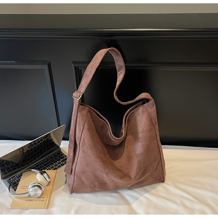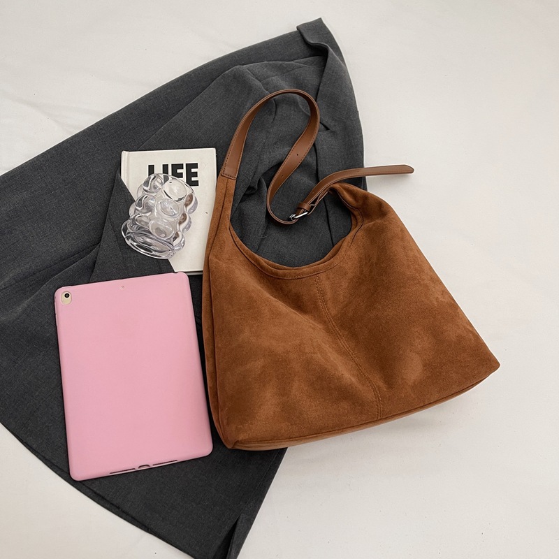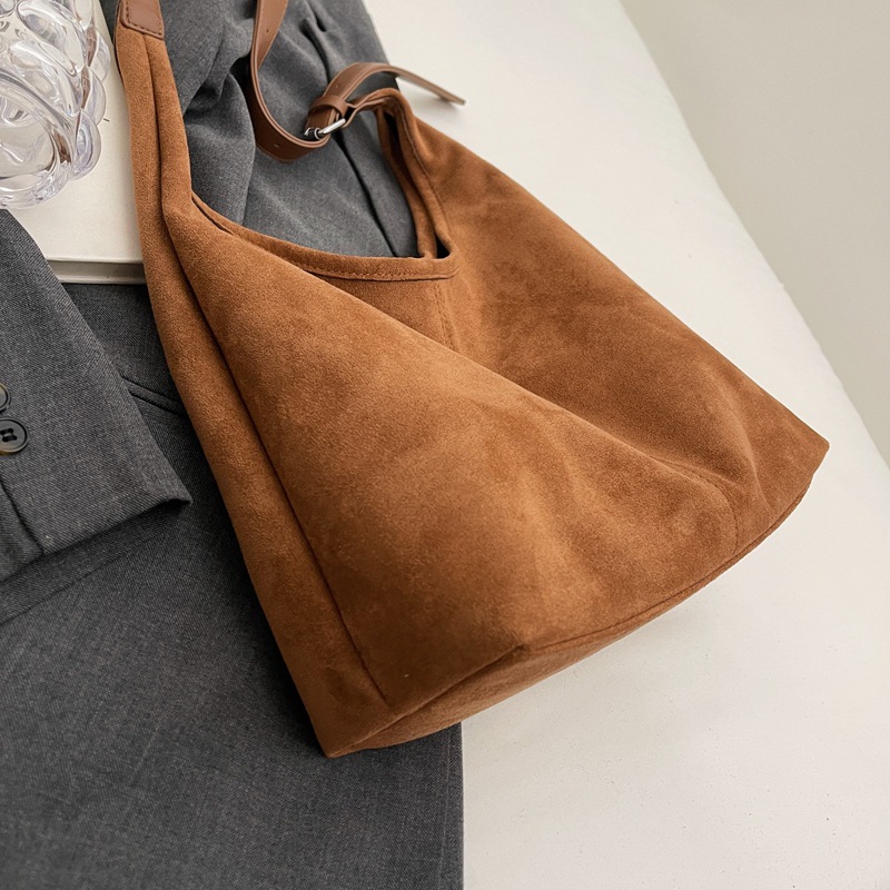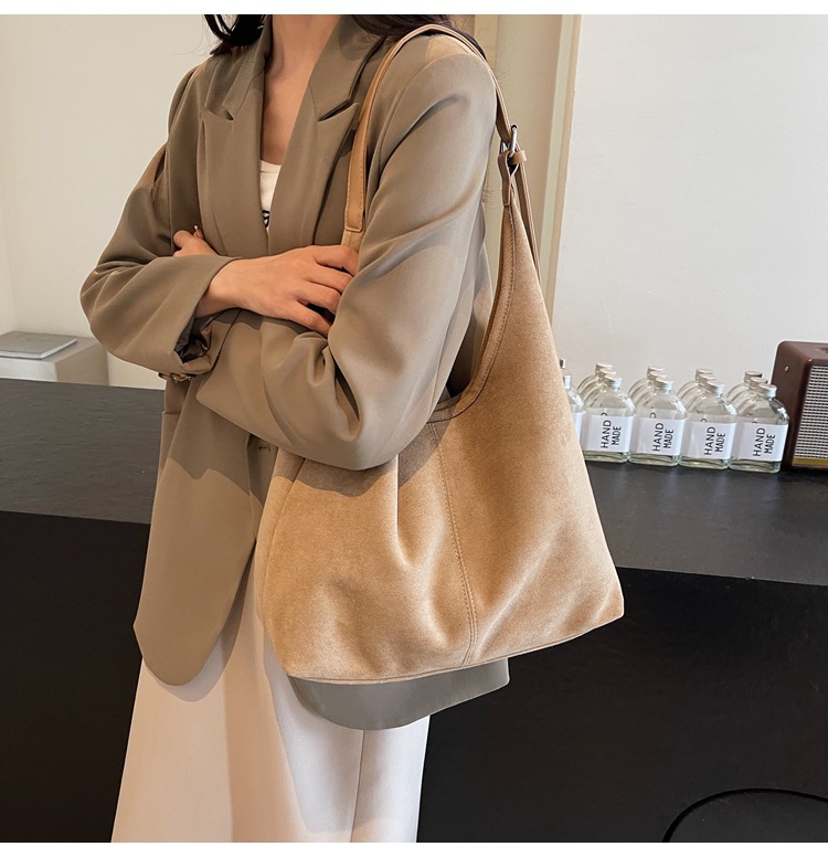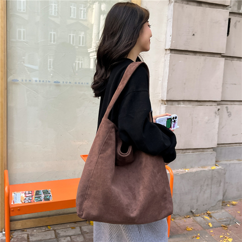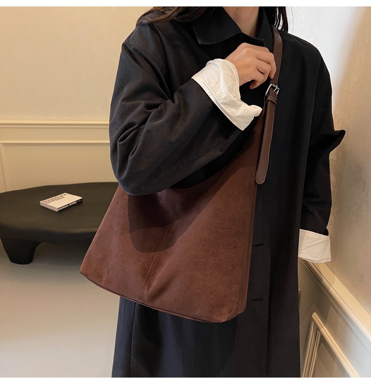 秋冬新作スエードバケットバッグ大容量ショルダー脇トートバッグレトロ通勤多用途マザーバッグ