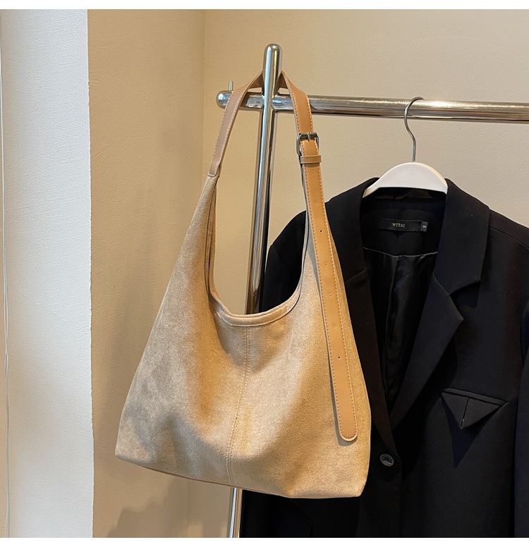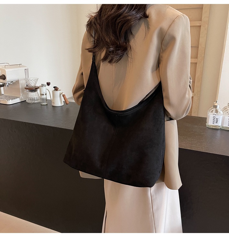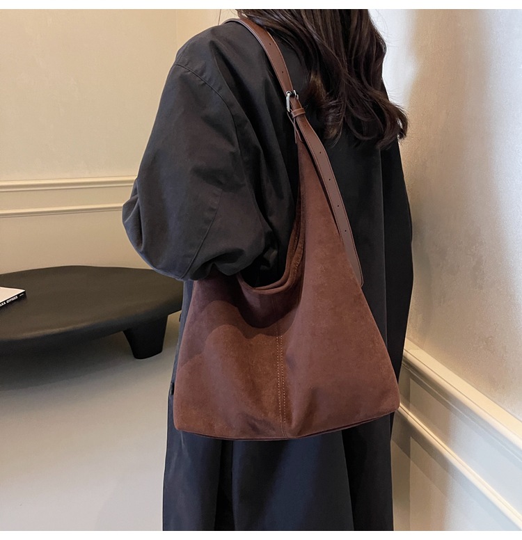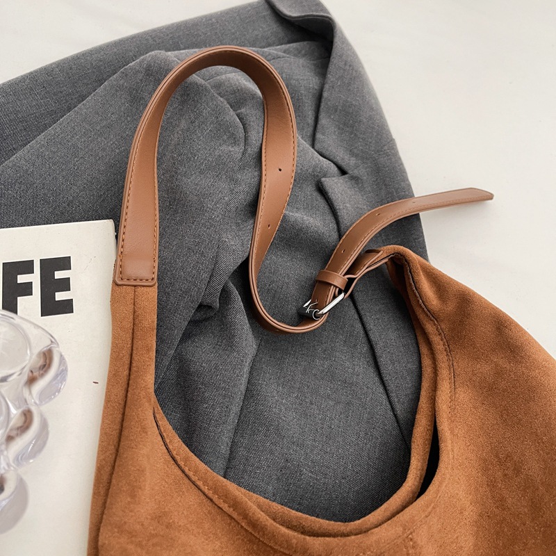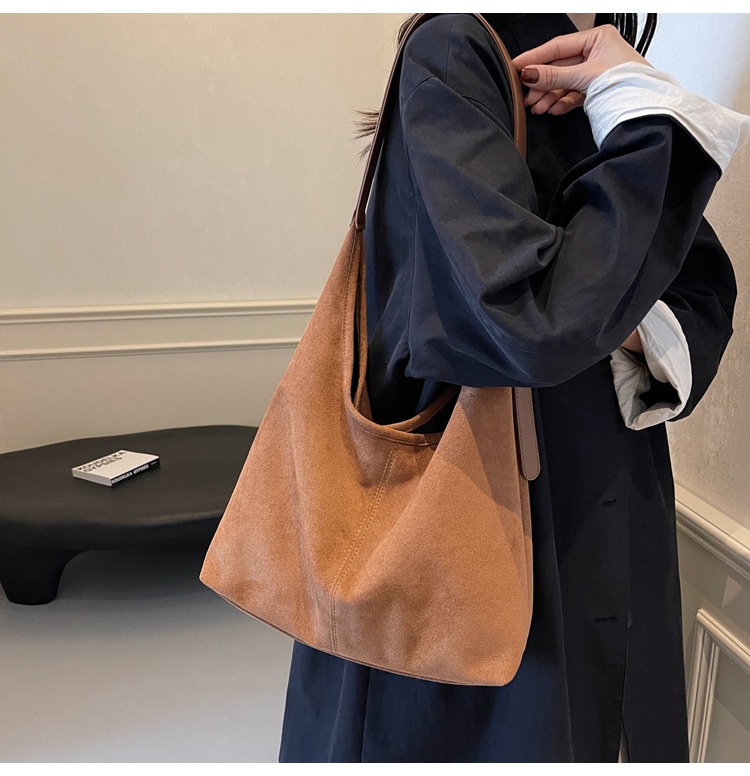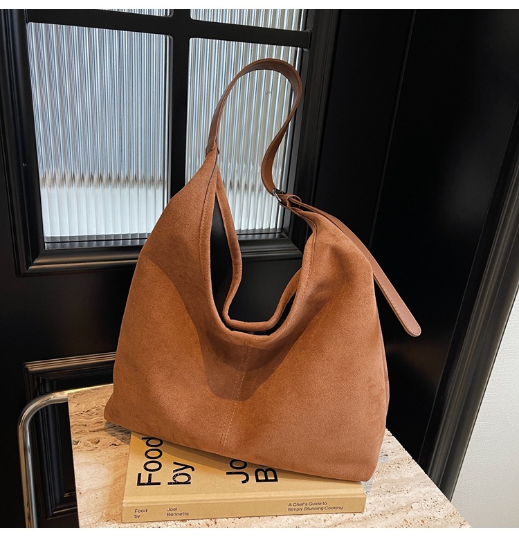 秋冬新作スエードバケットバッグ大容量ショルダー脇トートバッグレトロ通勤多用途マザーバッグ