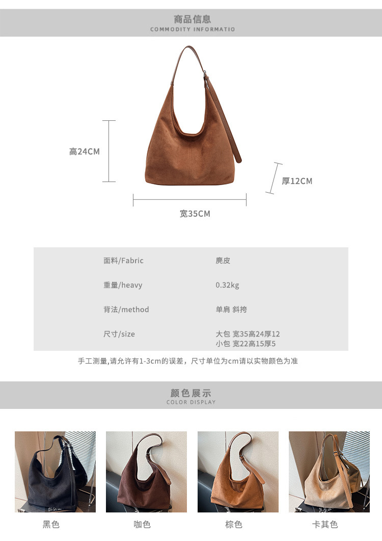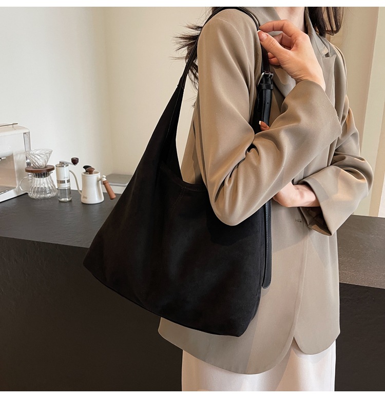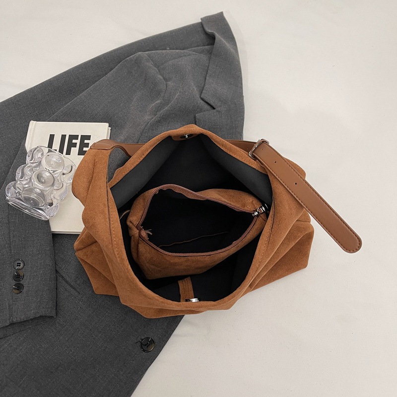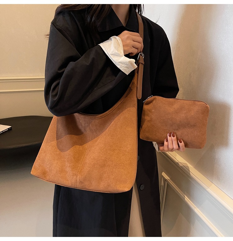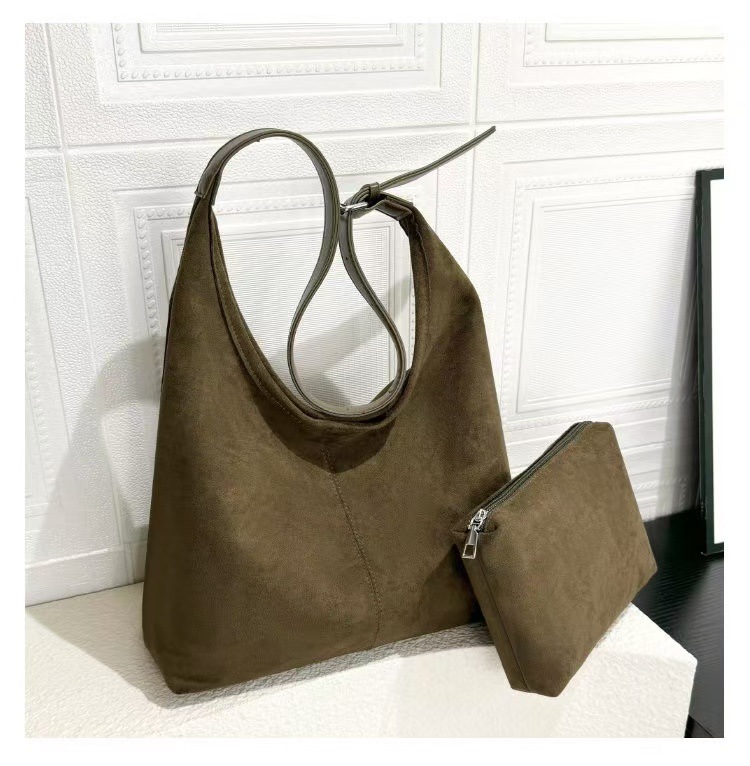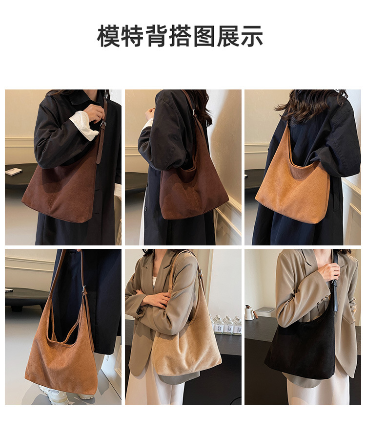 跨境秋冬麂皮绒腋下包大容量单肩腋下托特包复古通勤百搭子母包女