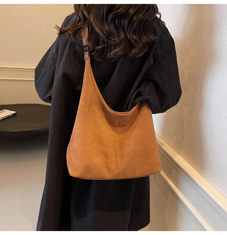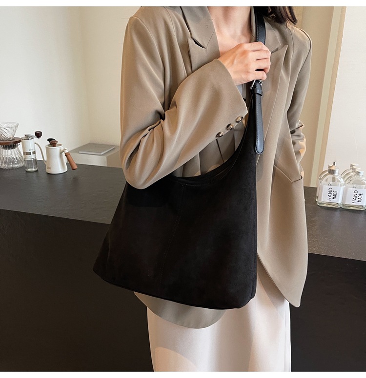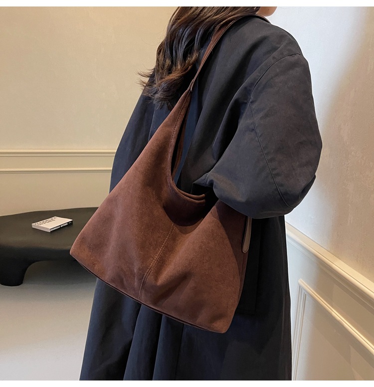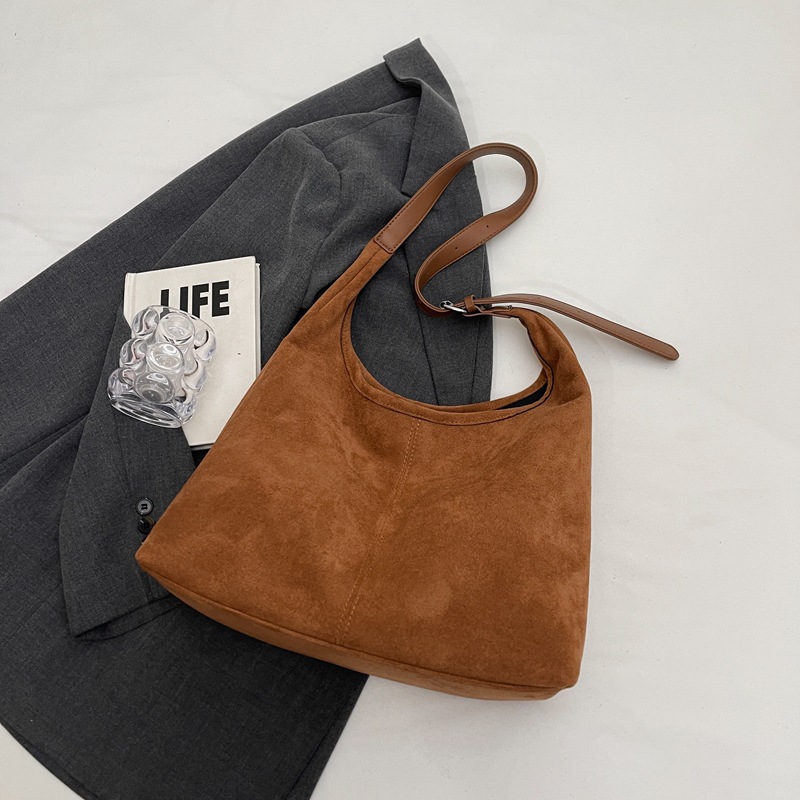 韓国の小衆のレトロなスエードの柔らかい面の肩の脇の下の包みの女性の2024秋冬の新型のシンプルなファッションのハンドバッグ