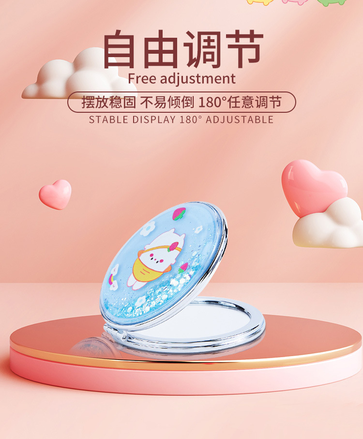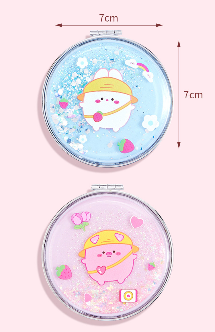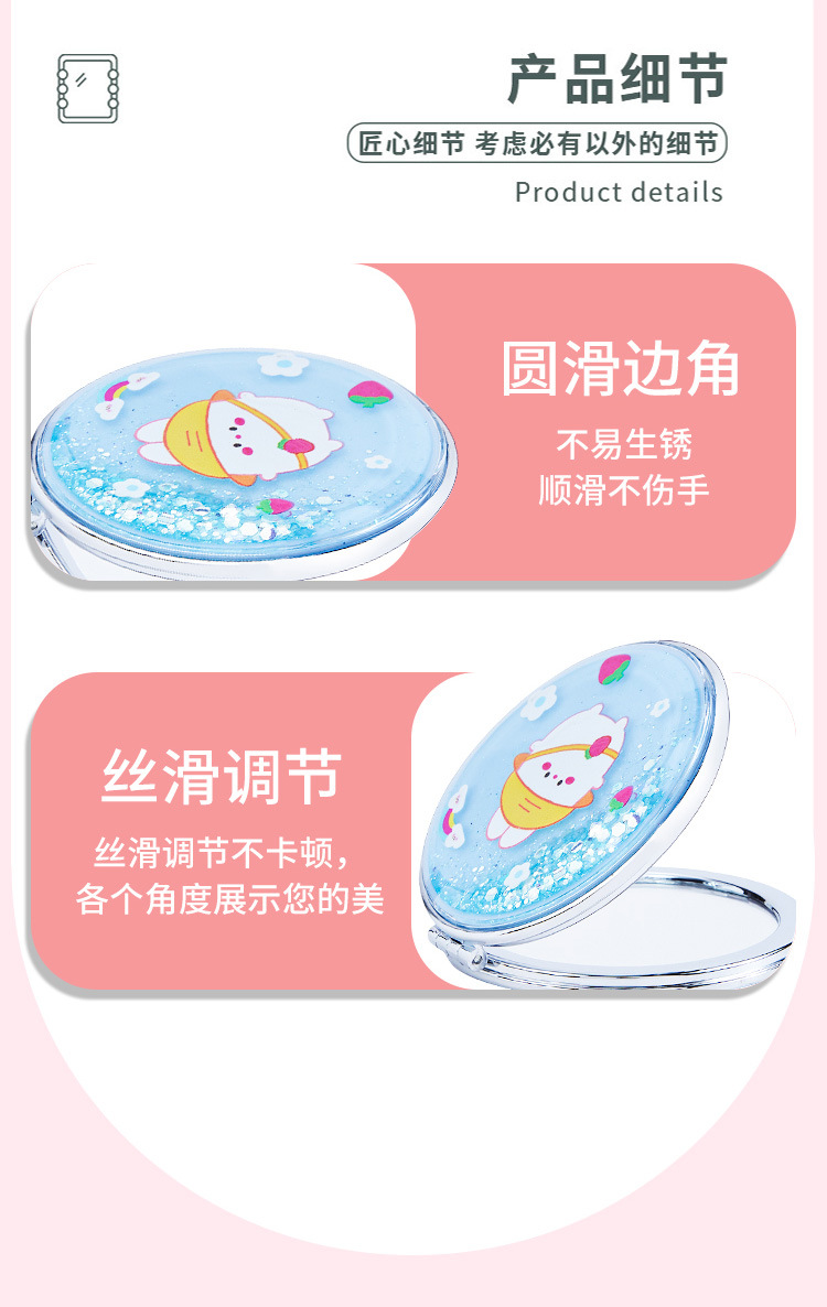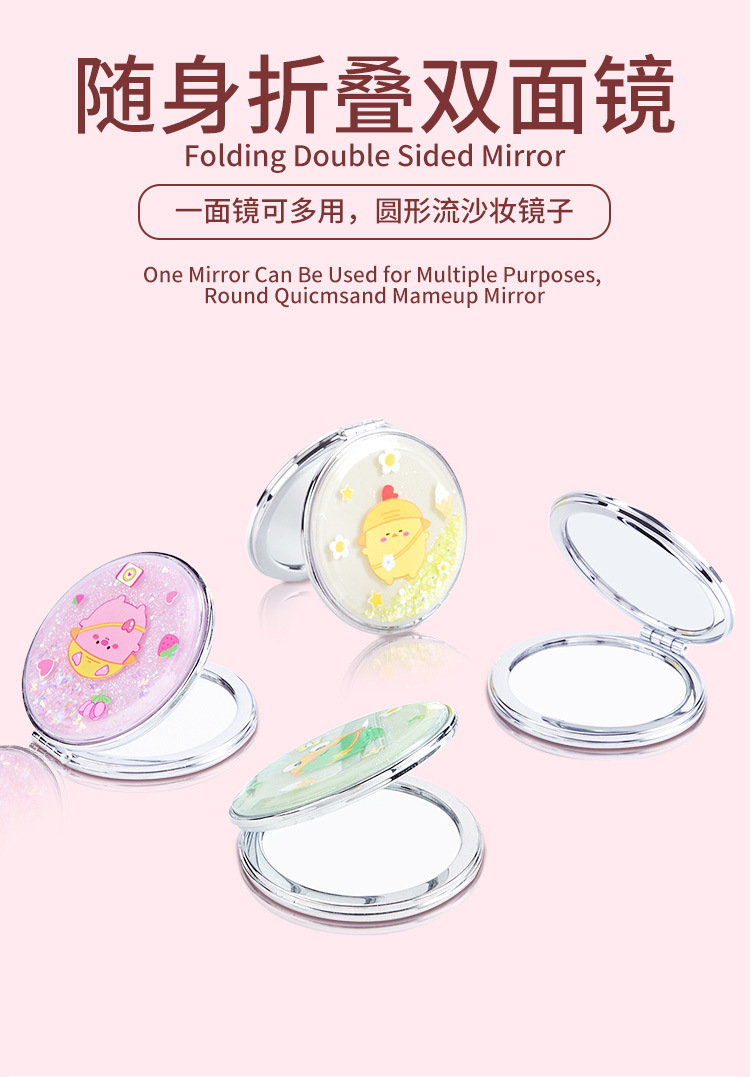 卡通可爱流沙随身镜便携折叠双面卡通化妆镜学生宿舍手持补妆镜