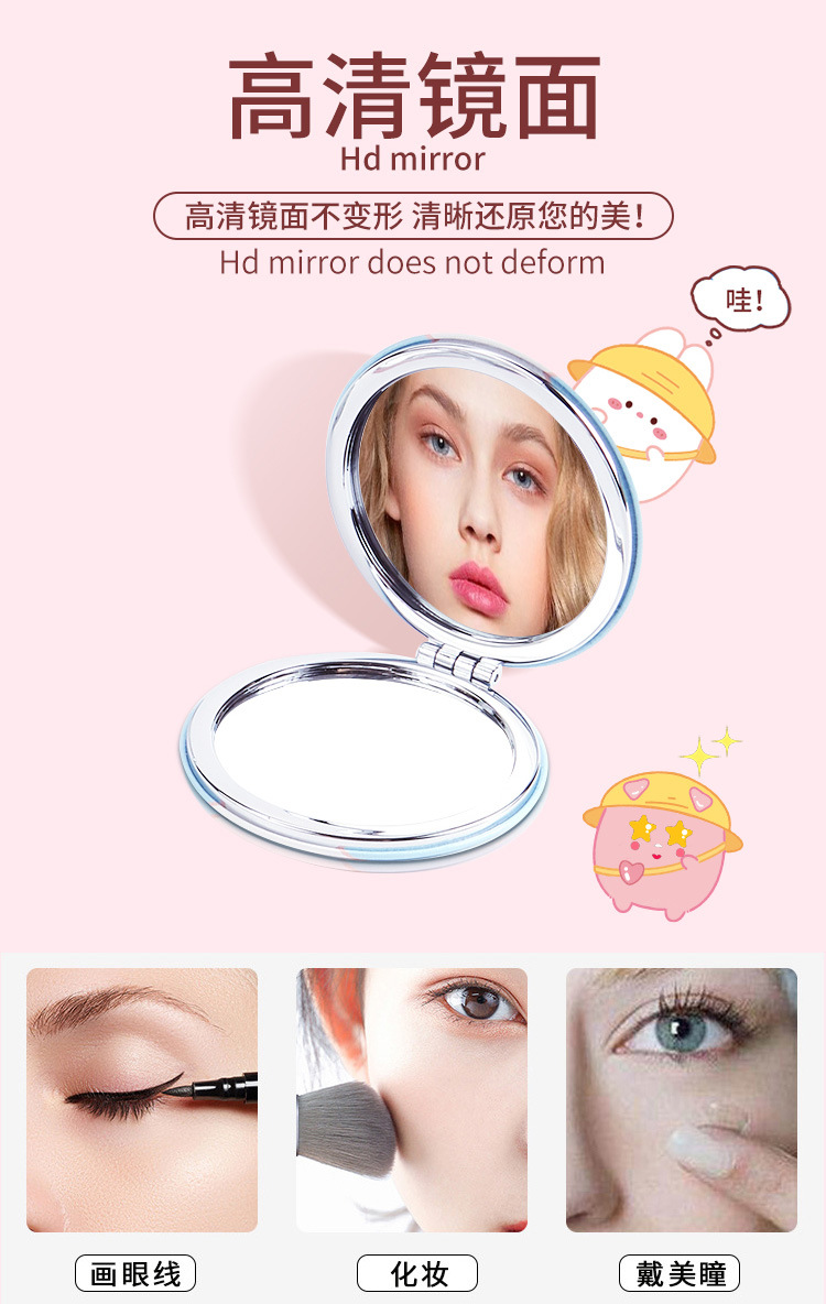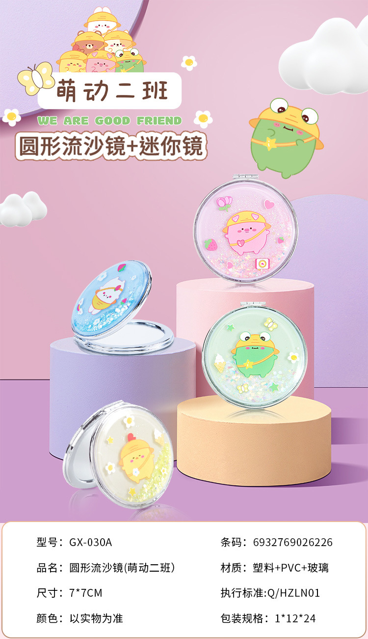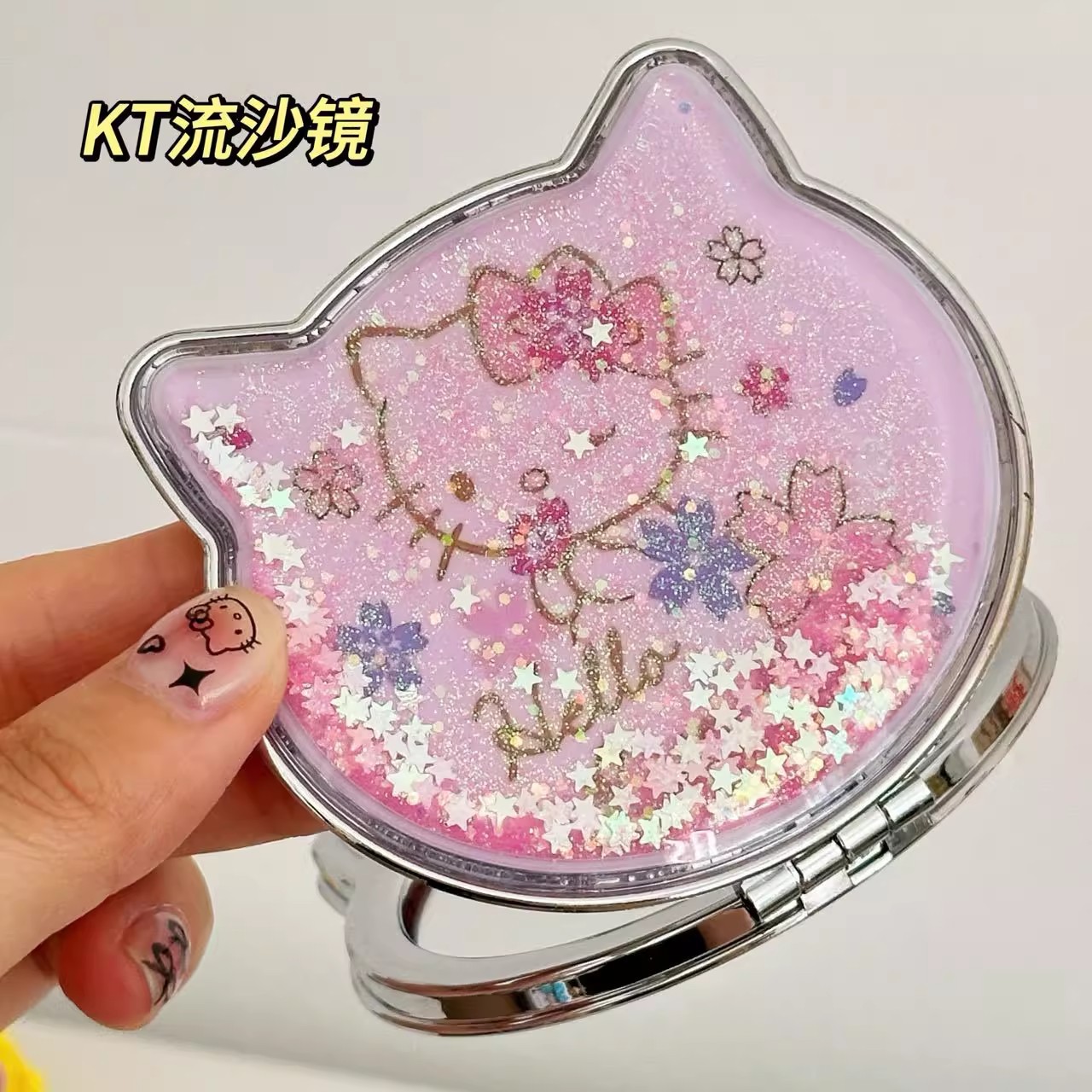 卡通可爱流沙随身镜便携折叠双面卡通化妆镜学生宿舍手持补妆镜