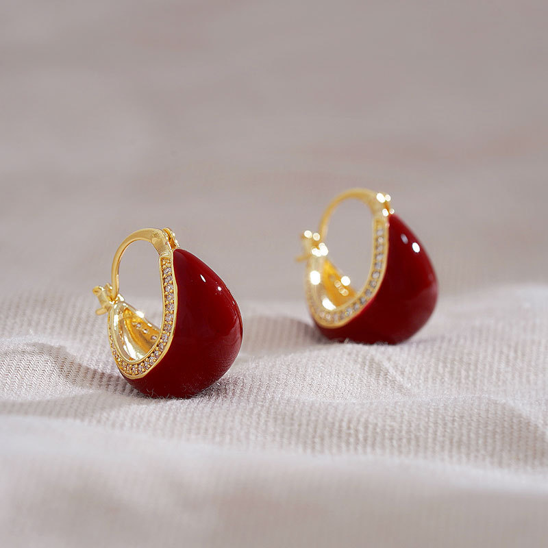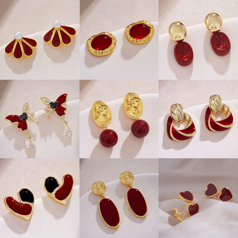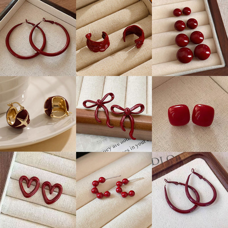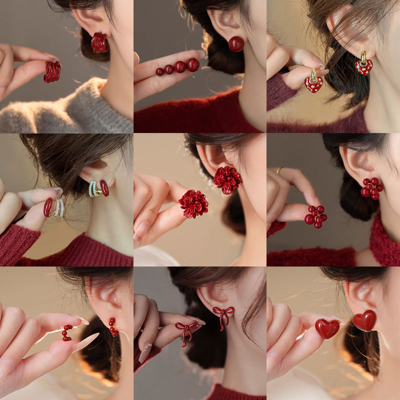 安可拉紅蝶結びピアスセット女性銀針秋冬レトロ気質シンプルおめでたいイヤリング大合集