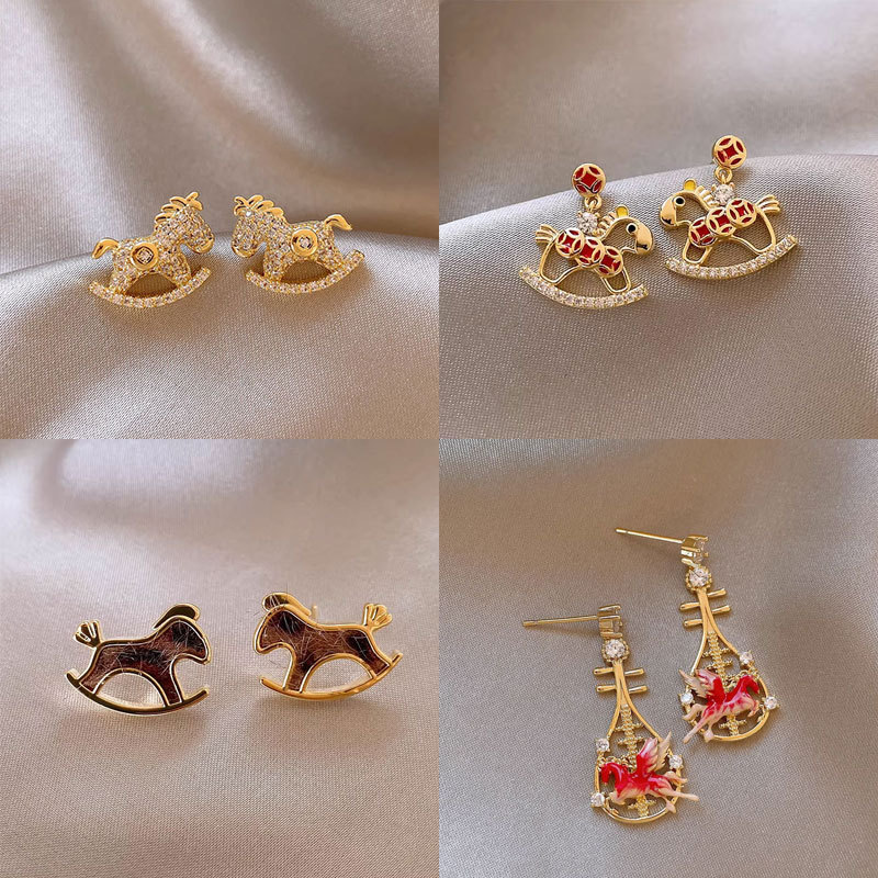 钱币木马微镶耳钉女2025新款爆款轻奢高级感耳饰小众设计精致耳环