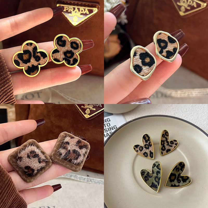 巨大な美しい雰囲気の女性の主 ~ 爆発的なヒョウの紋様の四つ葉のクローバーの金属のピアスの高級な馬の毛は皮の甘いクールな風のイヤリングを貼ります。