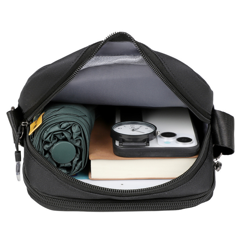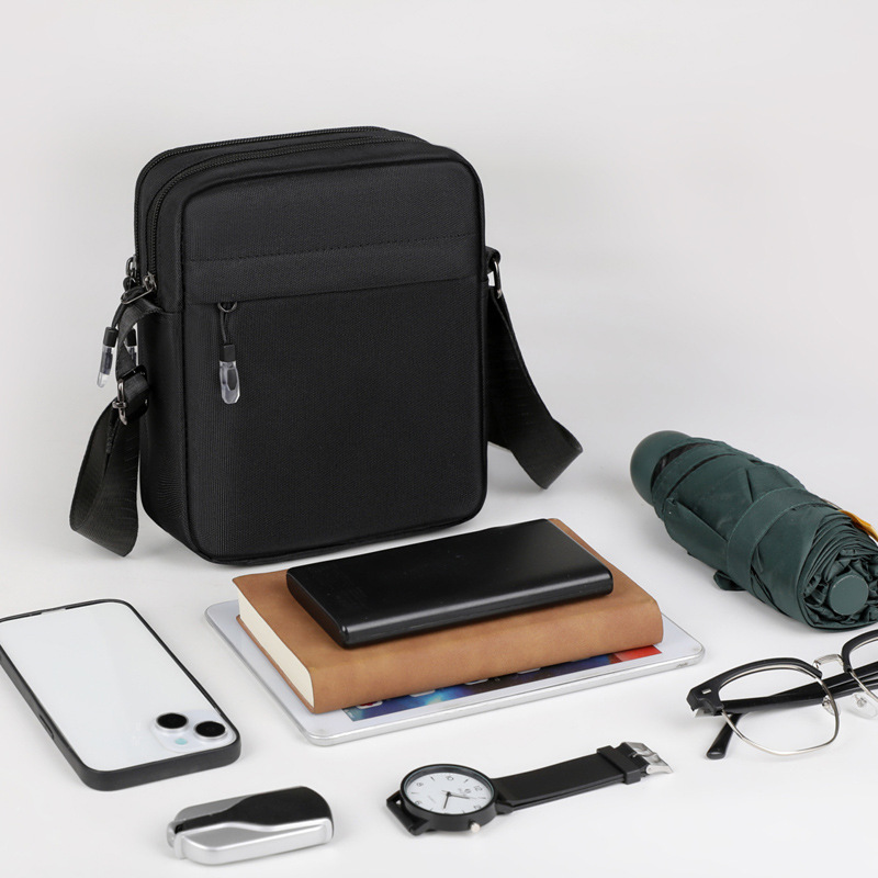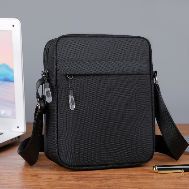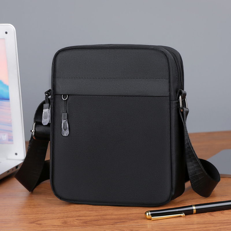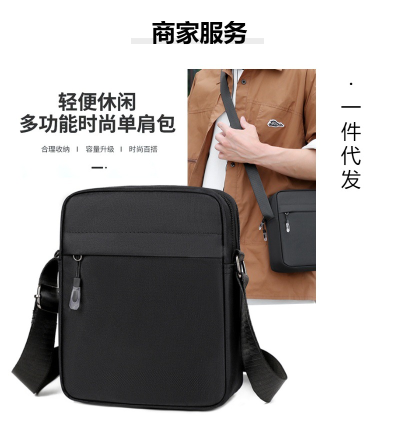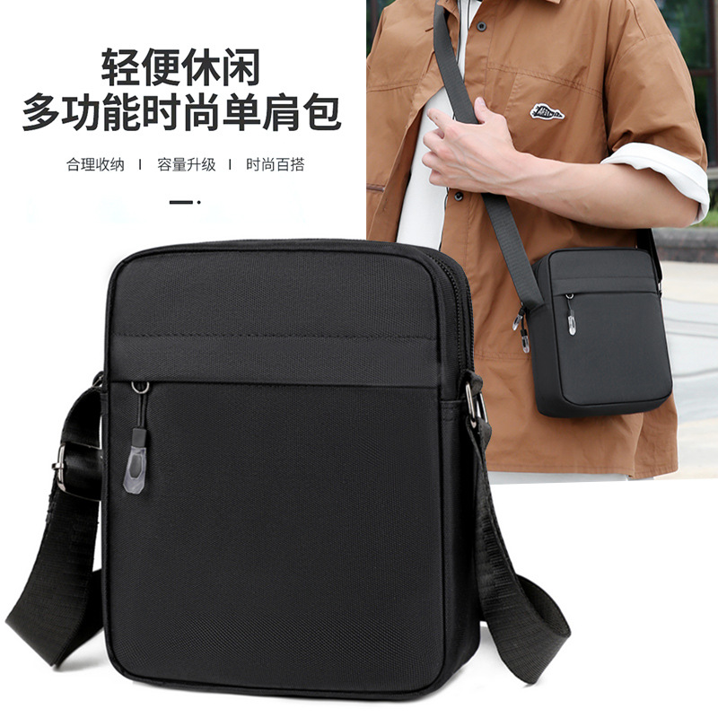 メンズショルダーバッグカジュアルシンプルブラック斜め掛けショルダーバッグオックスフォード布印字ロゴメーカー卸斜め掛けプレゼント