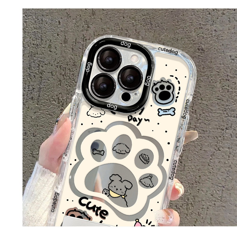 ミラークリームシェル-透明-子犬の足,ミラークリームシェル-透明-子犬の足+スタンド