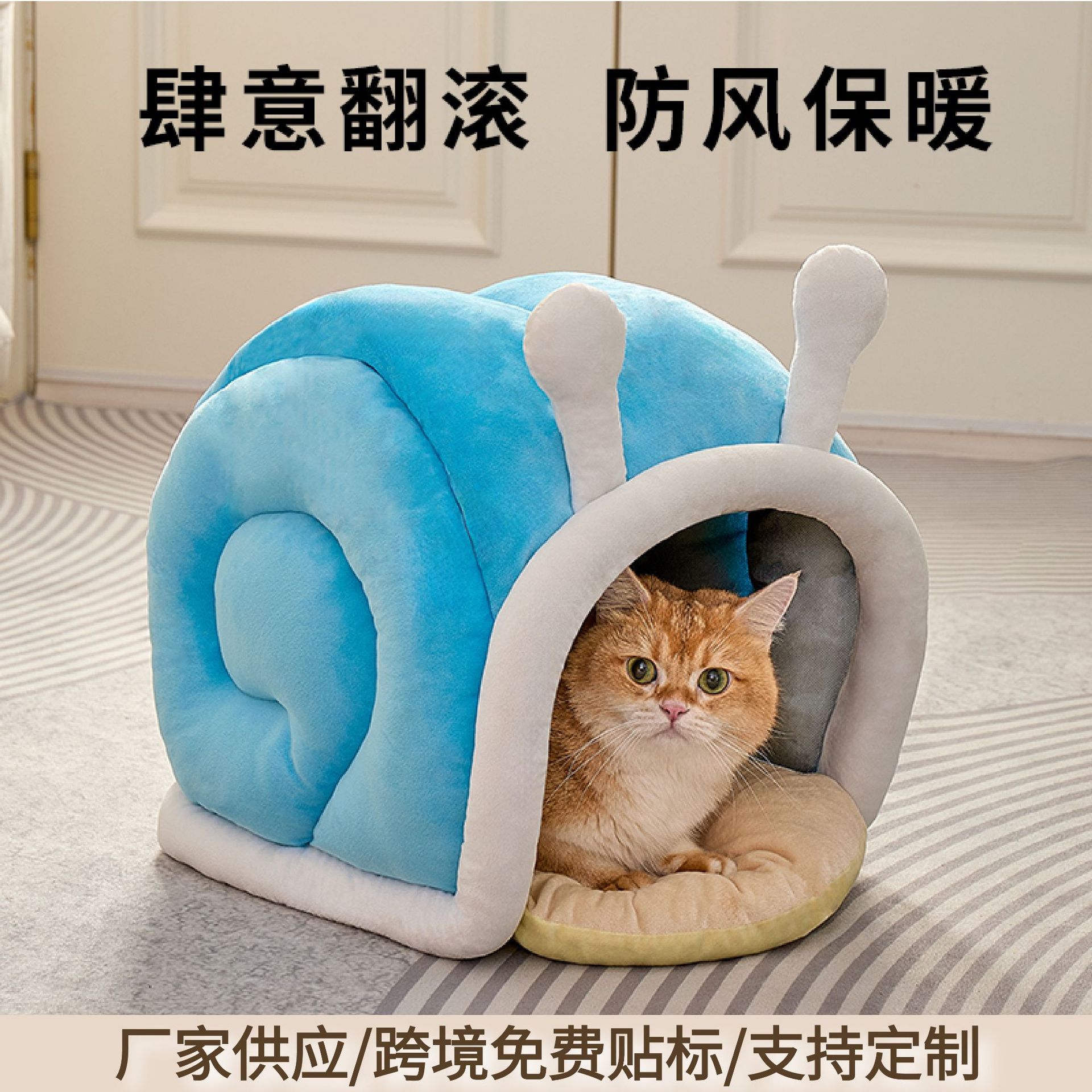 ネット赤ペット巣猫睡眠巣四季通用猫巣半閉鎖猫巣は冬の保温猫屋を解体して洗うことができる