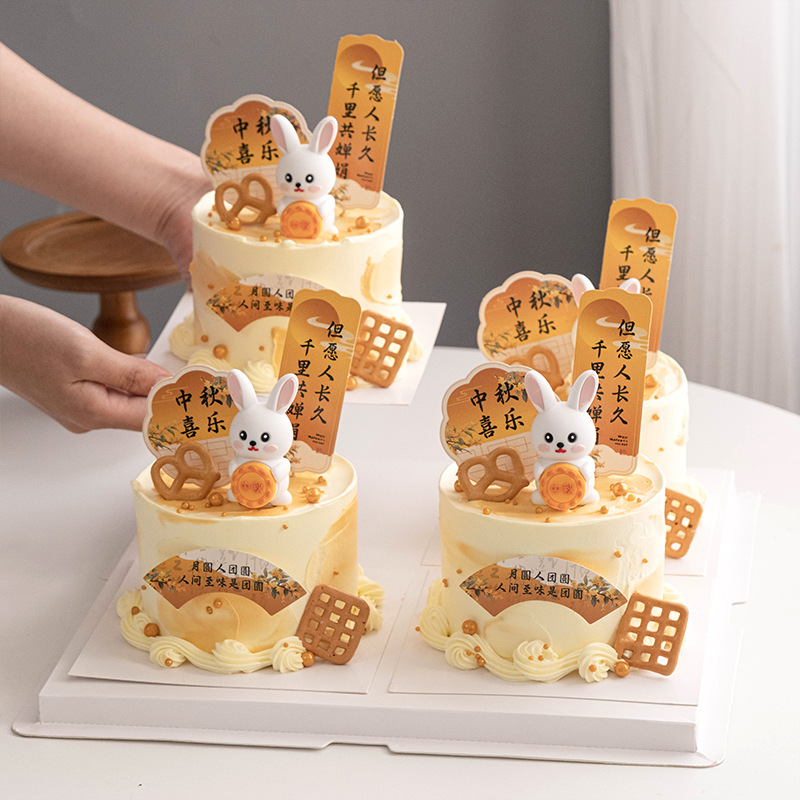 网红2025中秋节蛋糕装饰月饼兔子摆件中秋快乐亚克力节日甜品插件
