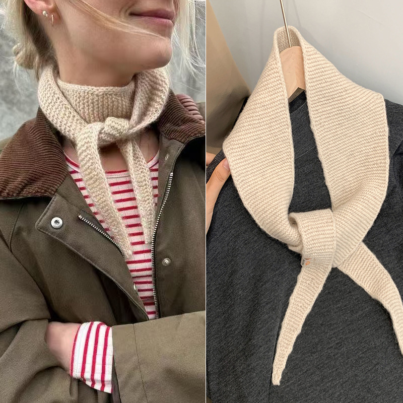 韩系复古小众设计100%羊毛围巾女氛围感百搭丝巾慵懒风系脖领巾潮