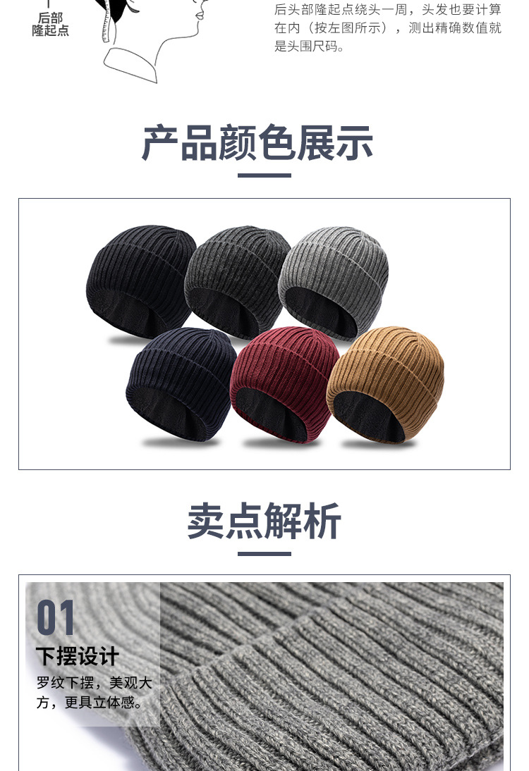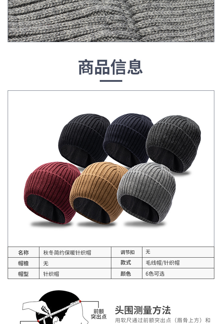 ニット帽子男性冬保温男性毛糸帽冬潮大頭線帽厚手ベルベット防寒綿帽