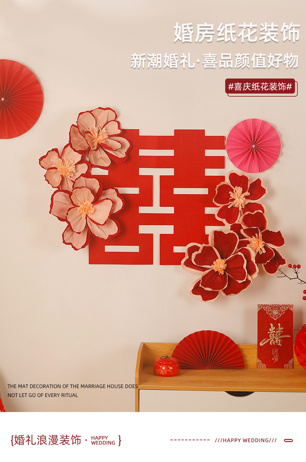 ウェディングルームのしわの花の立体的なしわの紙の花は新築のベッドの頭の寝室の背景の壁を飾ります。