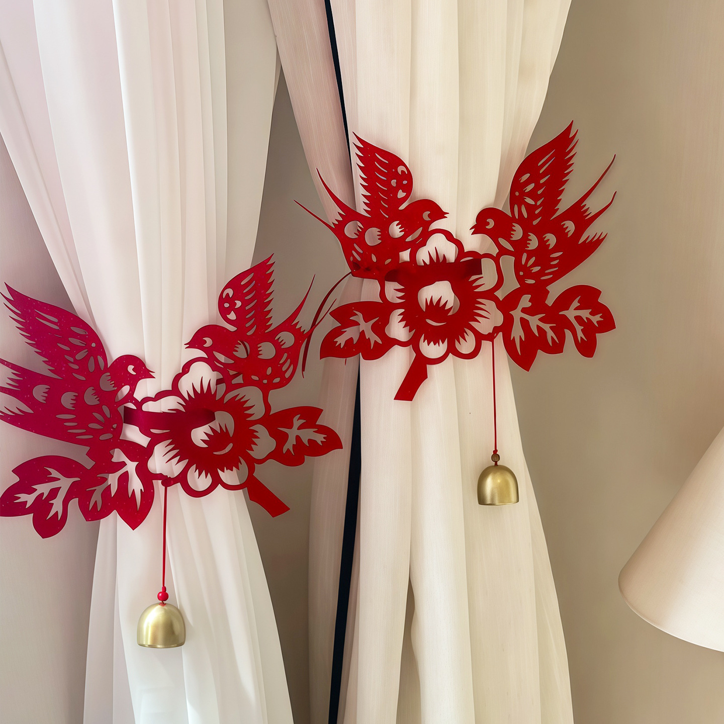婚礼男女方窗帘挂饰婚房布置绑带对装新中式剪纸绑带结婚窗帘装饰