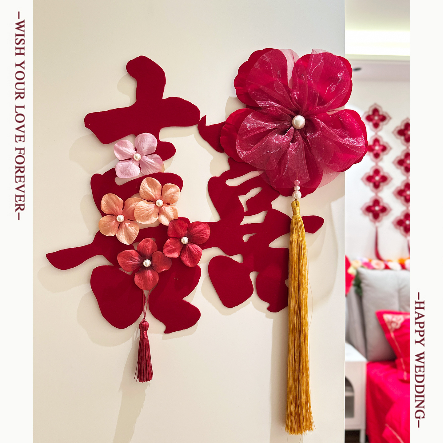 婚房布置房门喜字贴女方卧室男方喜字贴结婚装饰高档酒红喜字门贴