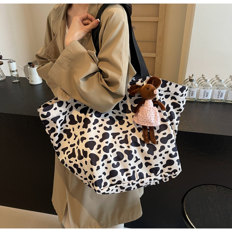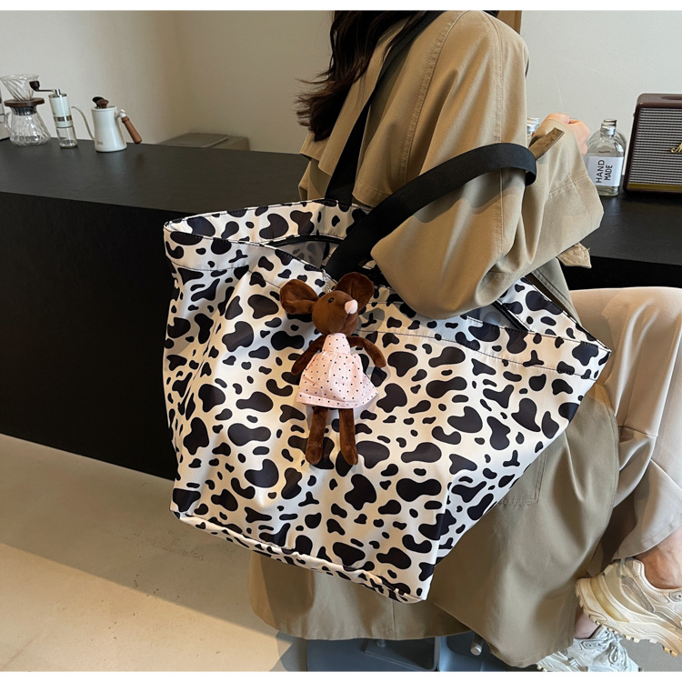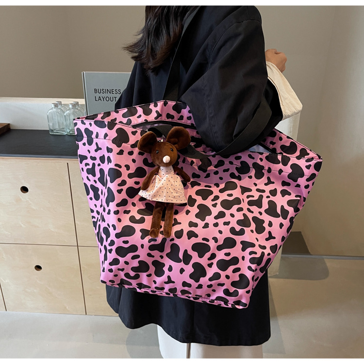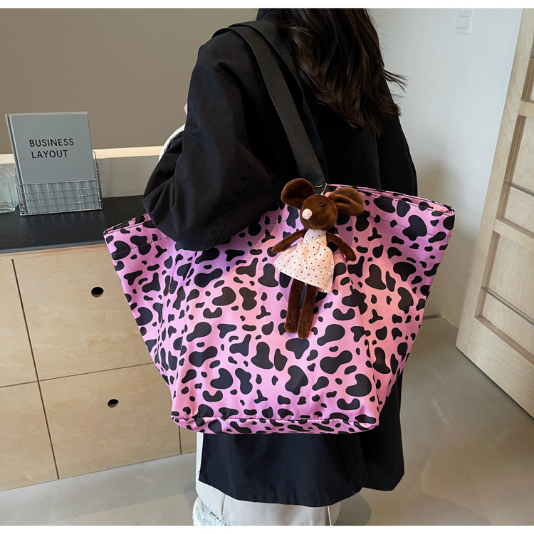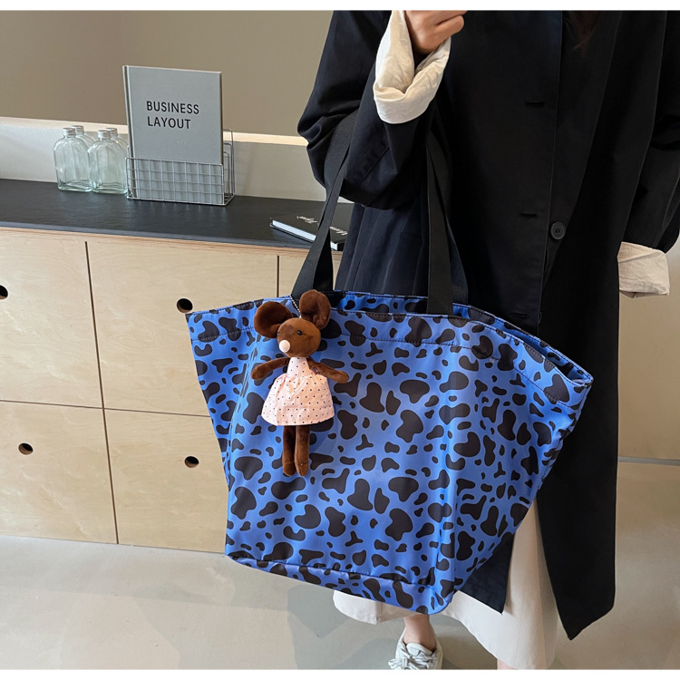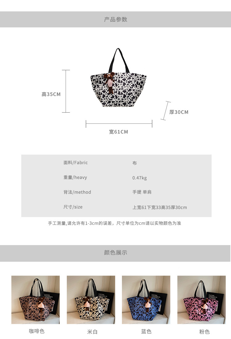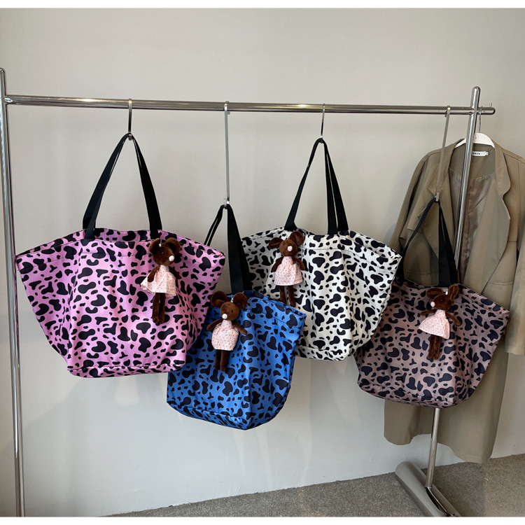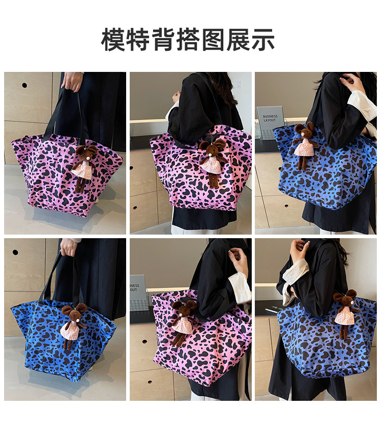 クロスボーダー新型韓国版ヒョウ柄プリント布バッグ女性大容量ショルダーバッグ女性旅行レジャーショッピングバッグ