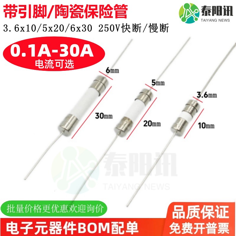 3.6*10mmセラミックヒューズ管ダブルキャップピン付き250v速断スローF/T0.5A1A2A5A10A