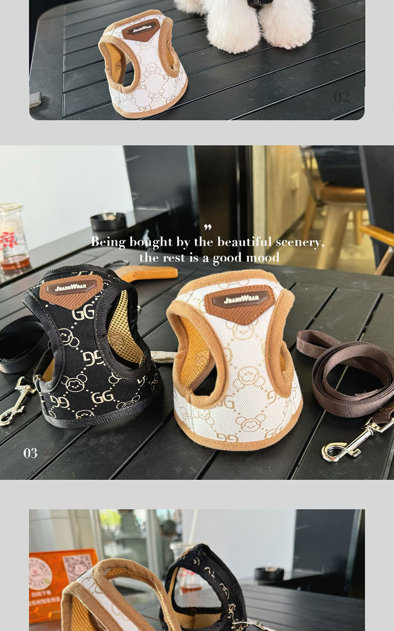 オリジナル新作学院風ペット胸牽引ロープ小型犬猫胸ストラップかわいい子犬ペット用品