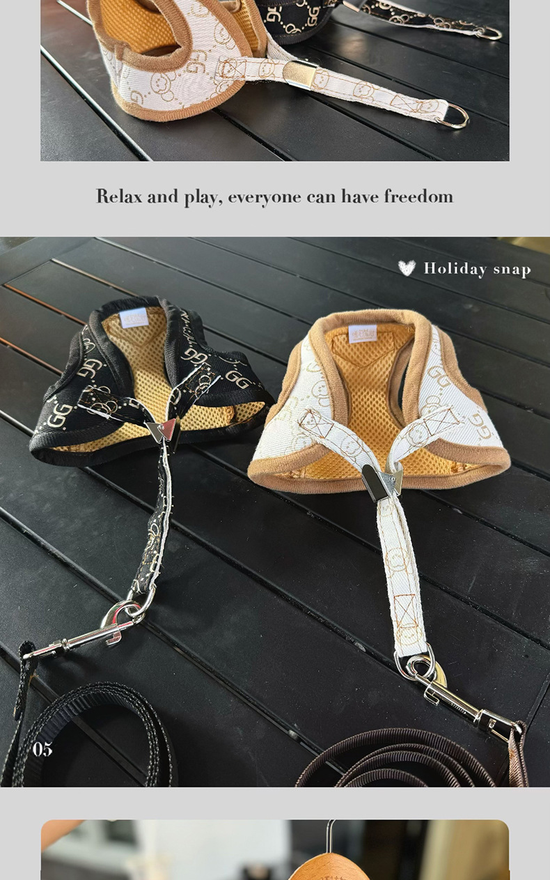 暖かいペット犬猫胸ストラップ通気調節可能なベスト式中小型犬牽引ロープGG箔押し