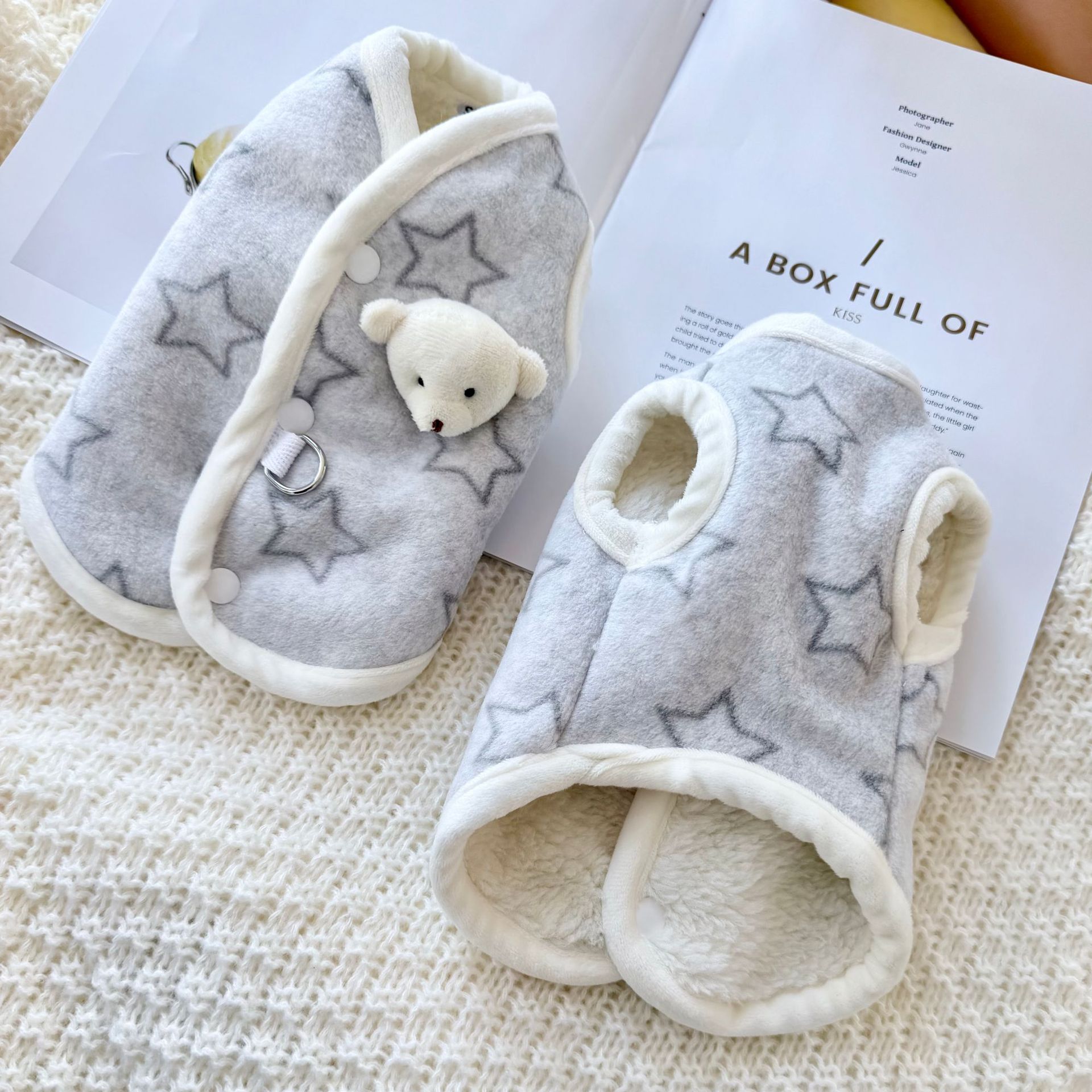 オリジナル秋冬ペット犬猫服ハチミツ熊暖かい綿毛ペット馬甲とベルベットは馬甲を牽引することができる