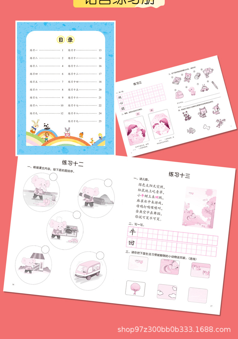 漢字のピンインの数字は赤い本の幼稚園の中でクラスの学前の筆順の偏っている英語の加減の小さい連絡を描きます。
