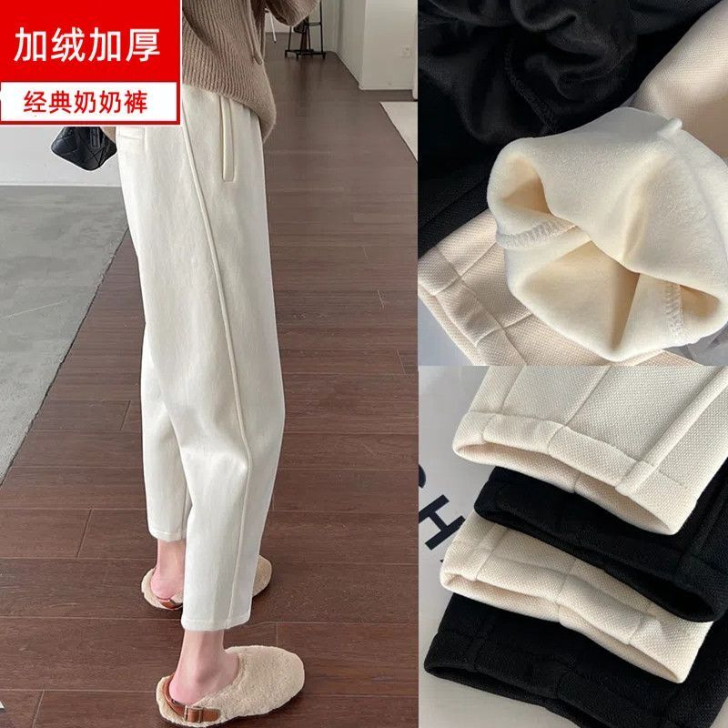 ベルベットの厚いハーレムズボンの柔らかい保温大根ズボンの冬の綿のズボンのゆるい痩せた米の白いカジュアルパンツの女性