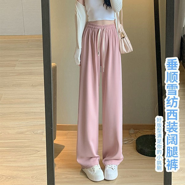 震える音の爆発物のマカロンの垂れ下がった感じのスーツのズボンの女性の韓国版の広腿のズボンの薄いタイプの百合はやせている直筒の春夏のズボンを現します。