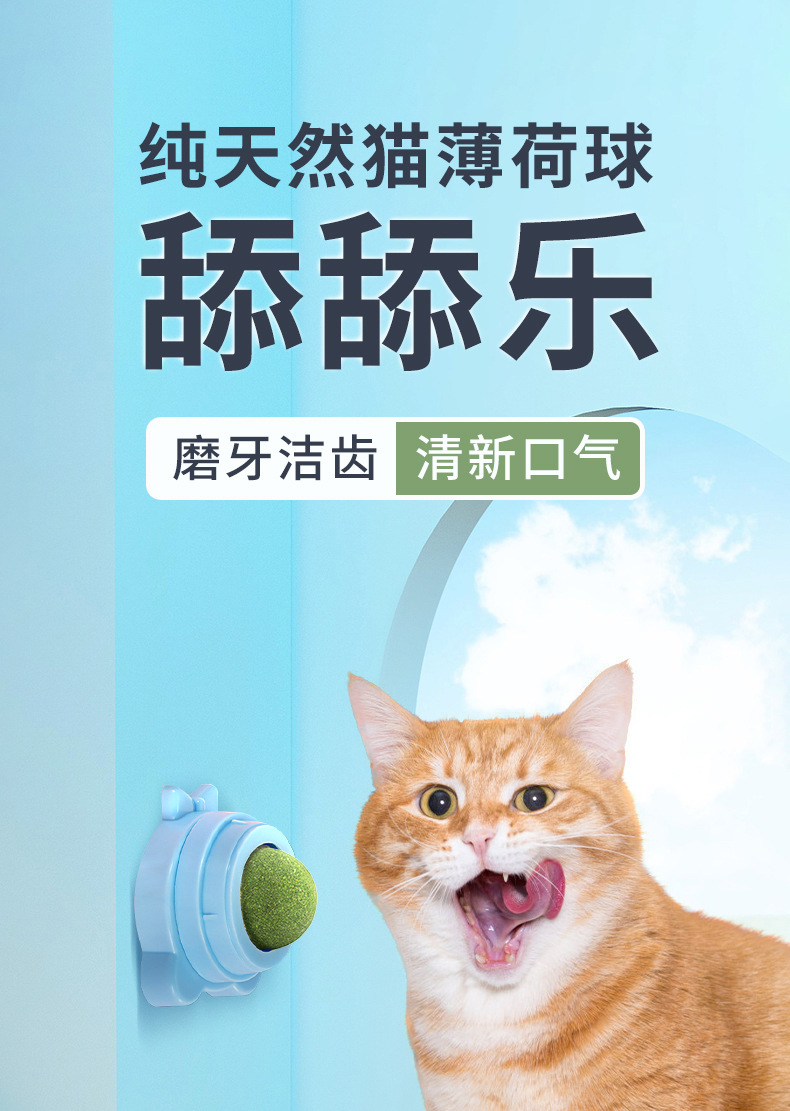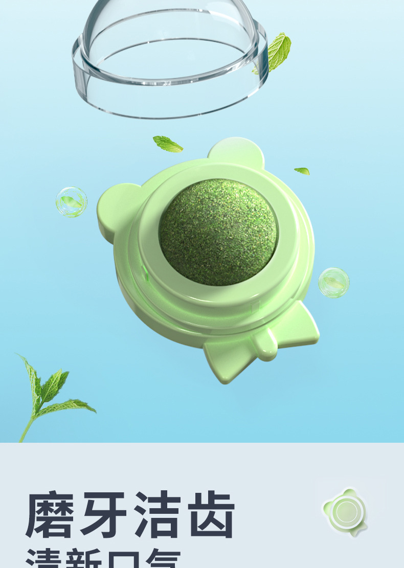 猫のミントのボールの猫のおもちゃは歯を磨いて歯をきれいにします。