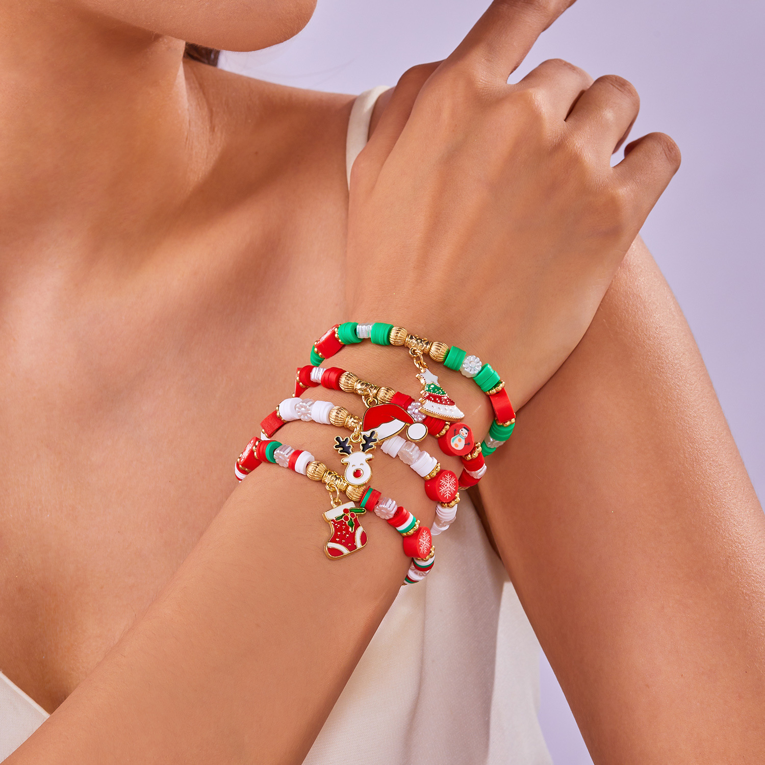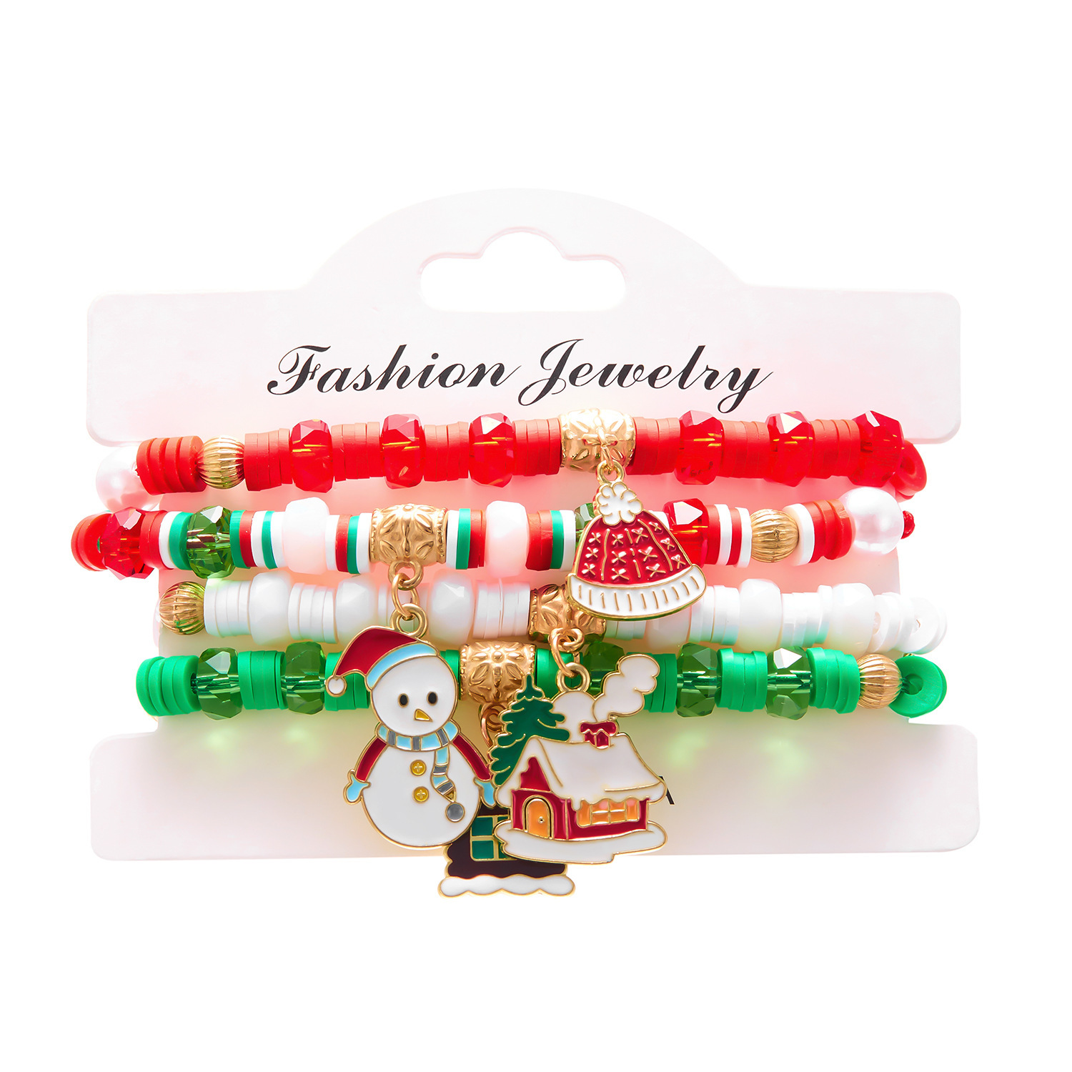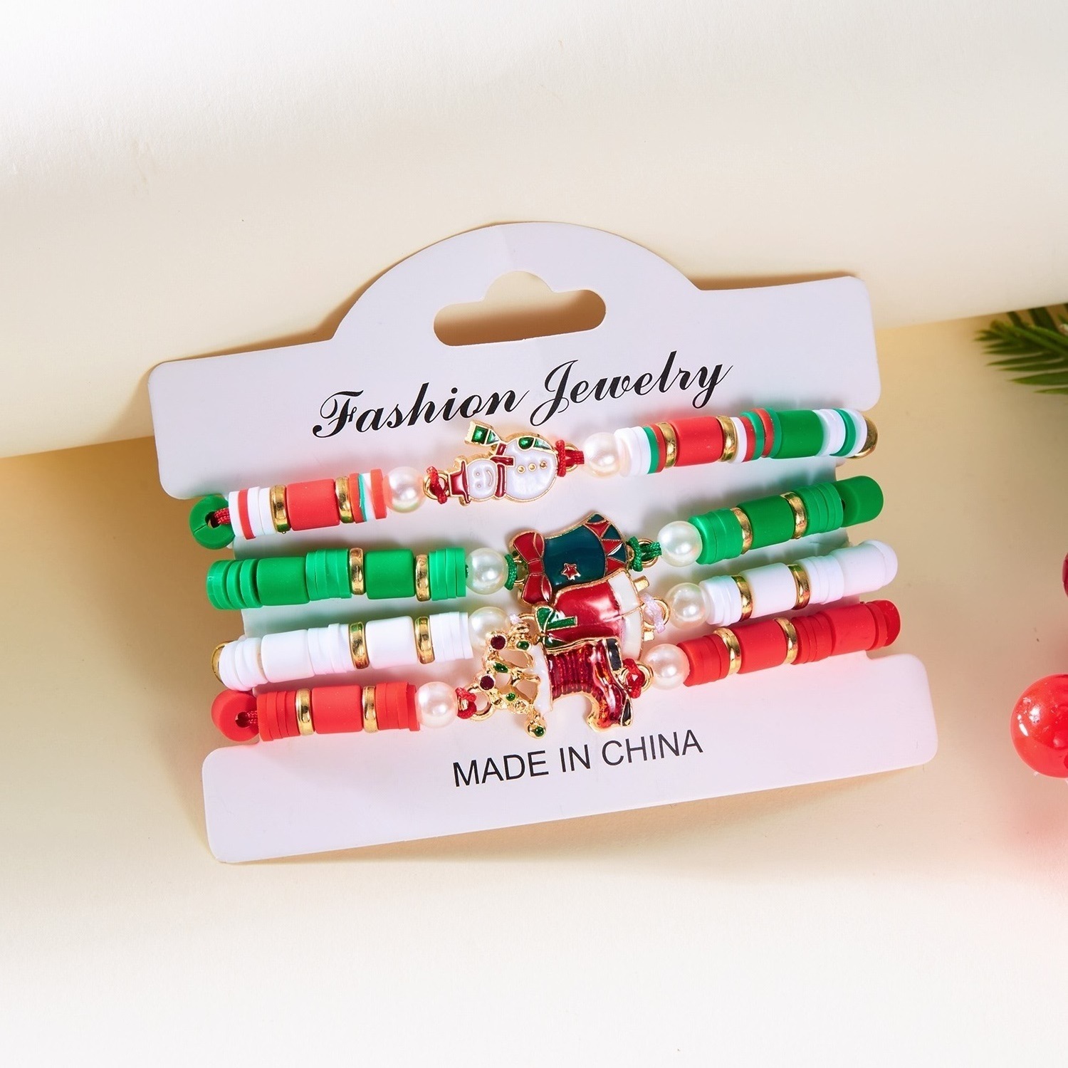 欧米風クリスマスクロスボーダーアクセサリー クリスマスカラフル編みサンタクロース クリスマスツリー ソフトクレイブレスレット クリスマスセット