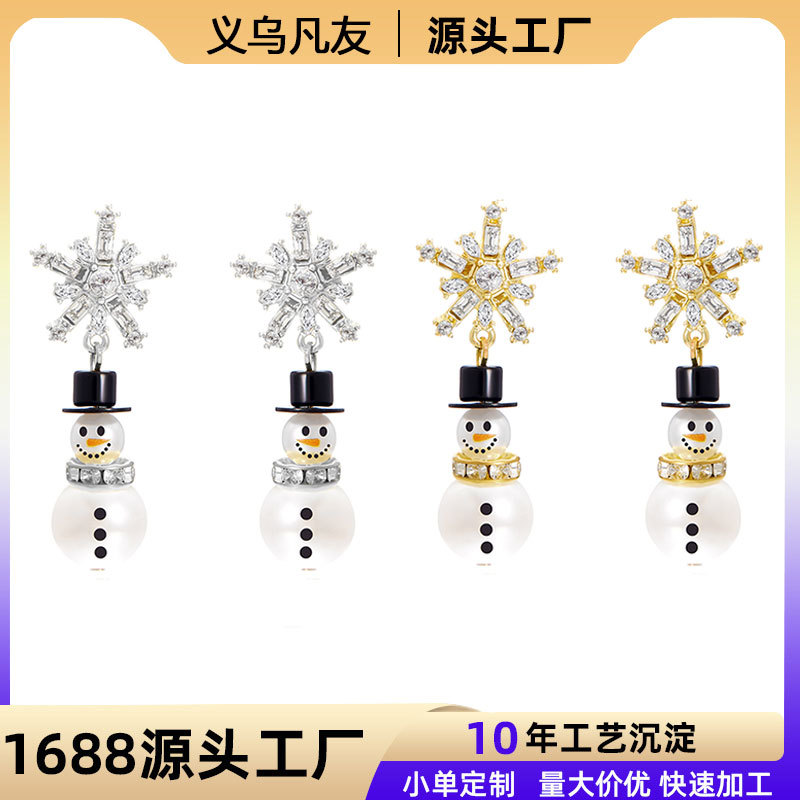 国境を越えた新商品がかわいい雪だるまのイヤリングクリスマスの気質は真珠の雪の帽子のピアスをつなぎ合わせます。