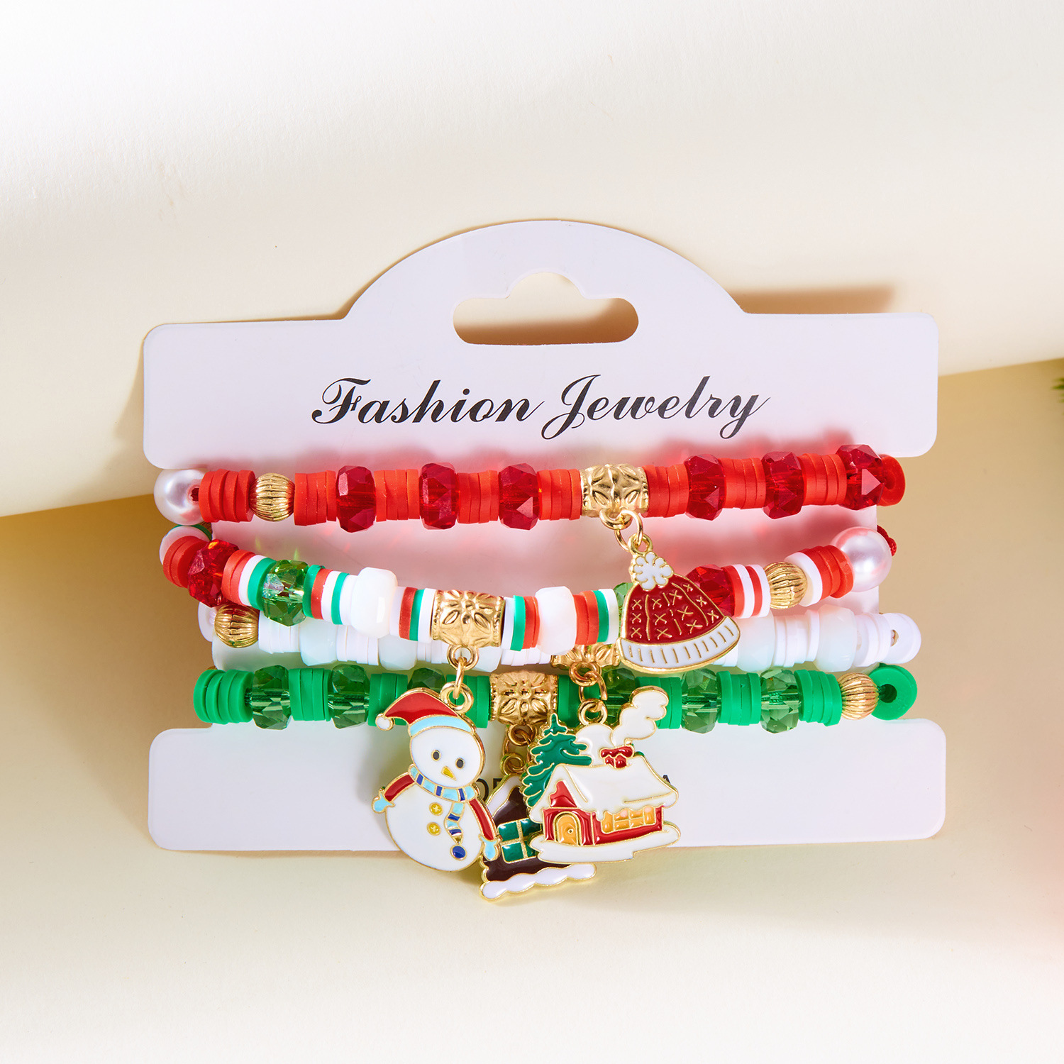 欧米の新型クリスマスブレスレットクリスマスカラーサンタクロース雪だるま軟陶ブレスレットクリスマスブレスレットセット