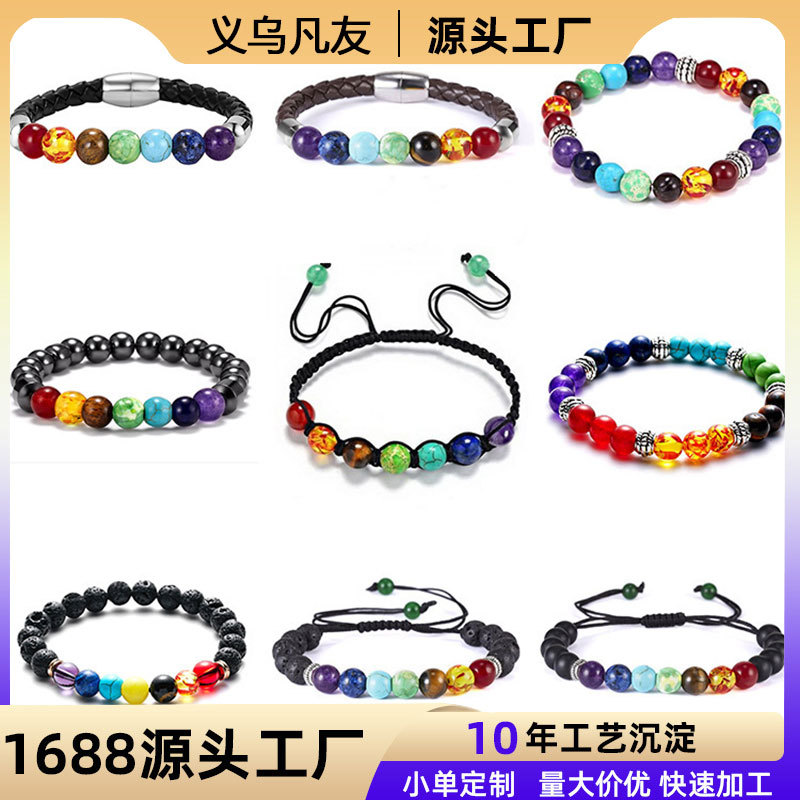 国境を越えて人気の高い、創造的で高級感のある七色の虹の手編みブレスレット 欧米の男女向け個性的なブレスレット卸売