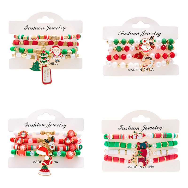 クリスマスクロスボーダー装飾品クリスマスカラー編みサンタクロースクリスマスツリー軟陶組み合わせブレスレットクリスマスセット