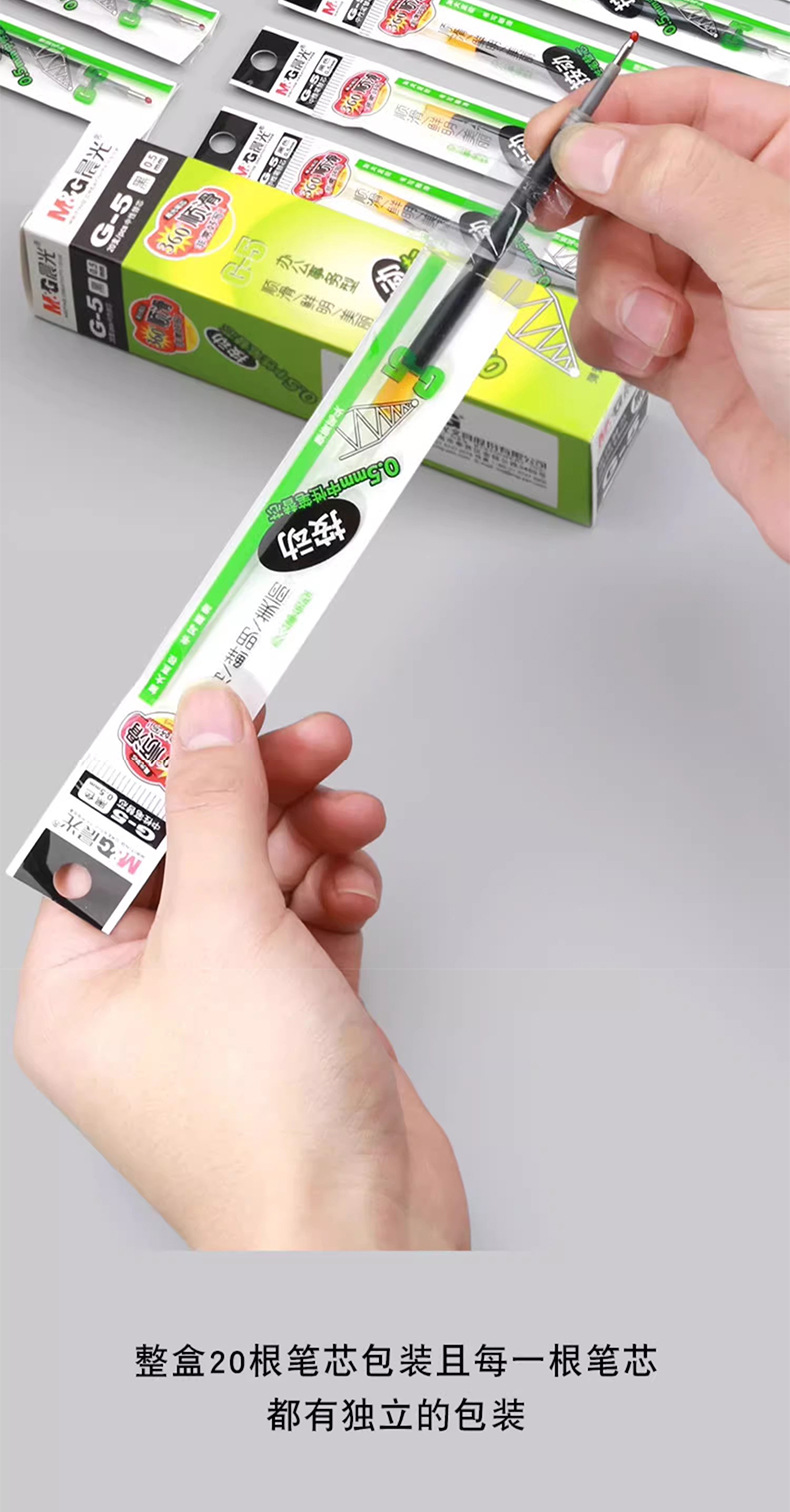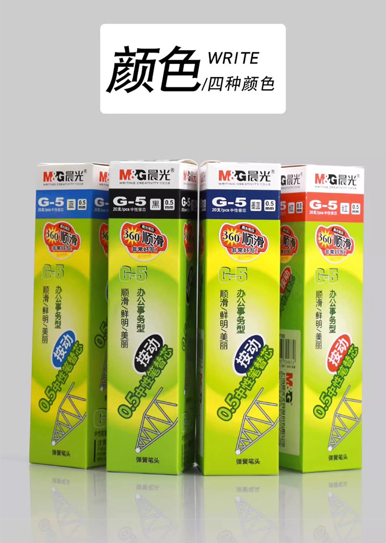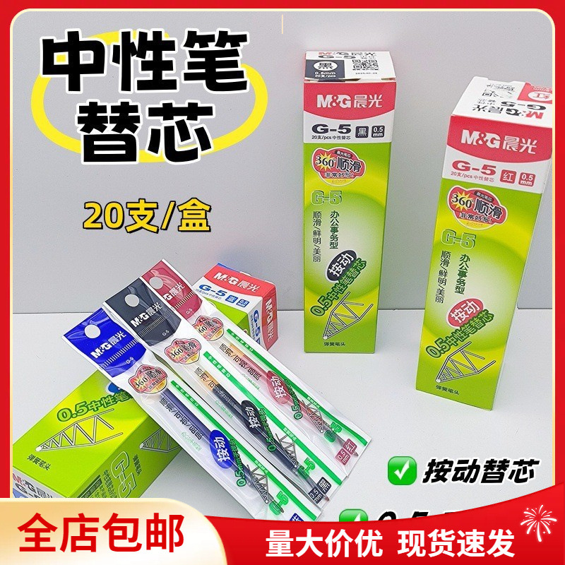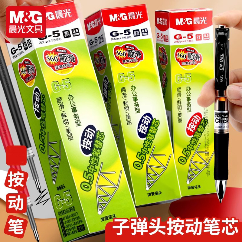 晨光G-5按动笔芯0.5子弹头中性笔替芯碳素笔芯黑色红色蓝色k35