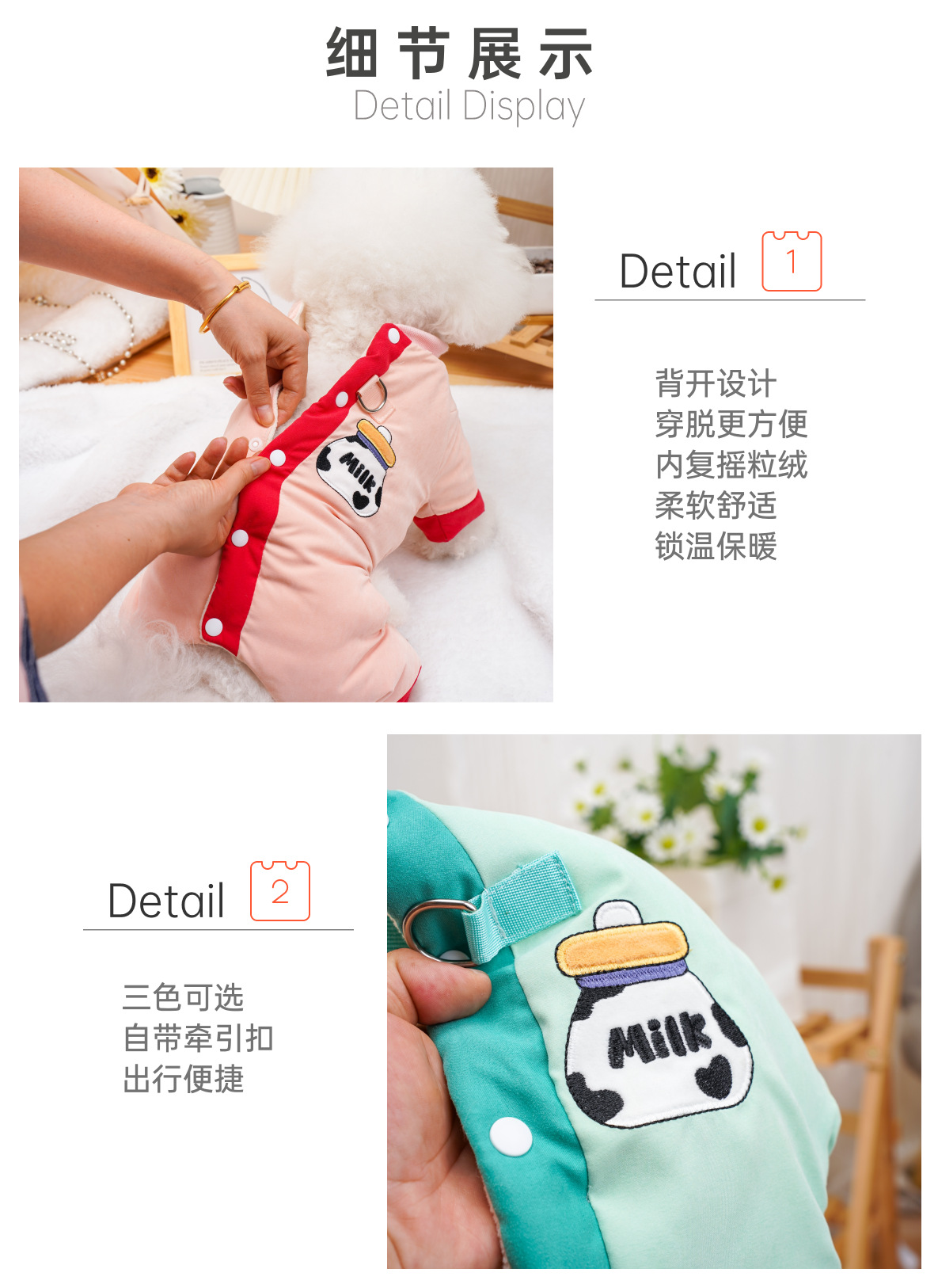 秋冬宠物衣服加厚保暖猫咪泰迪比熊可牵引狗狗衣服胸背开棉衣