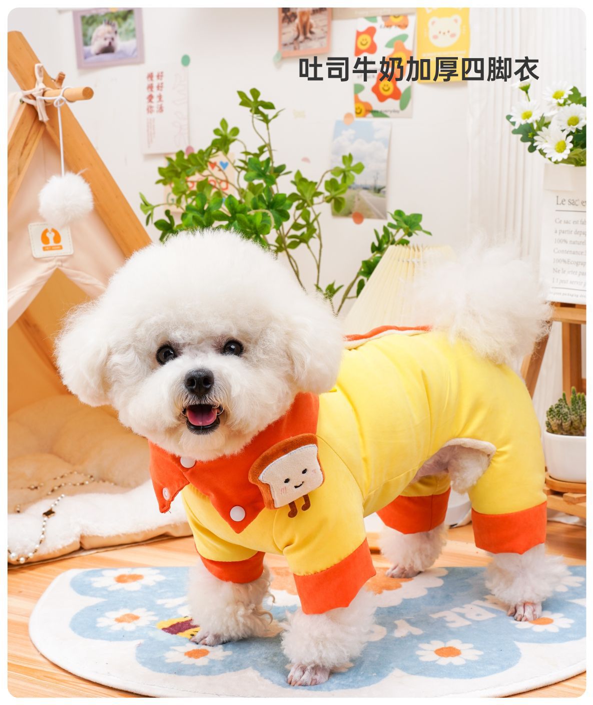 秋冬季新款宠物服装小狗猫咪无骨暖绒四脚衣比熊泰迪小型犬批发