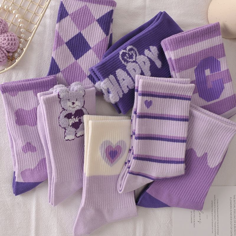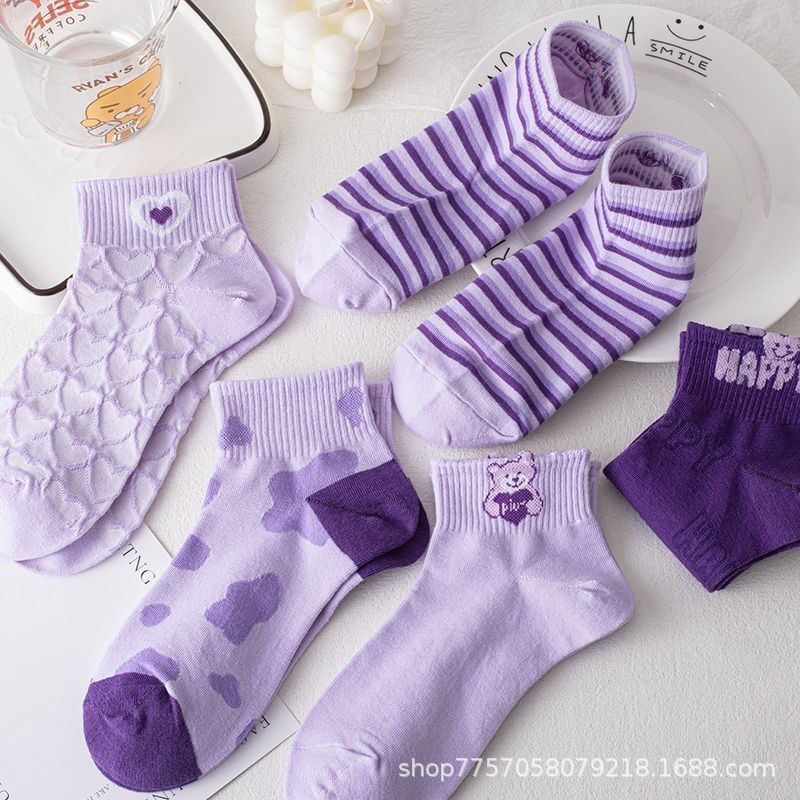 紫の靴下の女性の春夏の新型のファッションの靴下のins風のストッキングの漫画の熊のかわいいスポーツの女性の靴下の学生の靴下