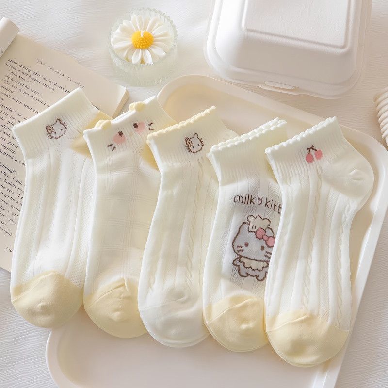 靴下の女性の純色のkt猫のかわいい女子学生のファッションの通気性の学生は汗を吸います。