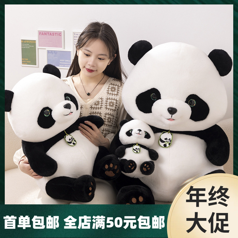 かわいいショルダーバッグのパンダボールのぬいぐるみは母子パンダの貝のぬいぐるみのプレゼントです。
