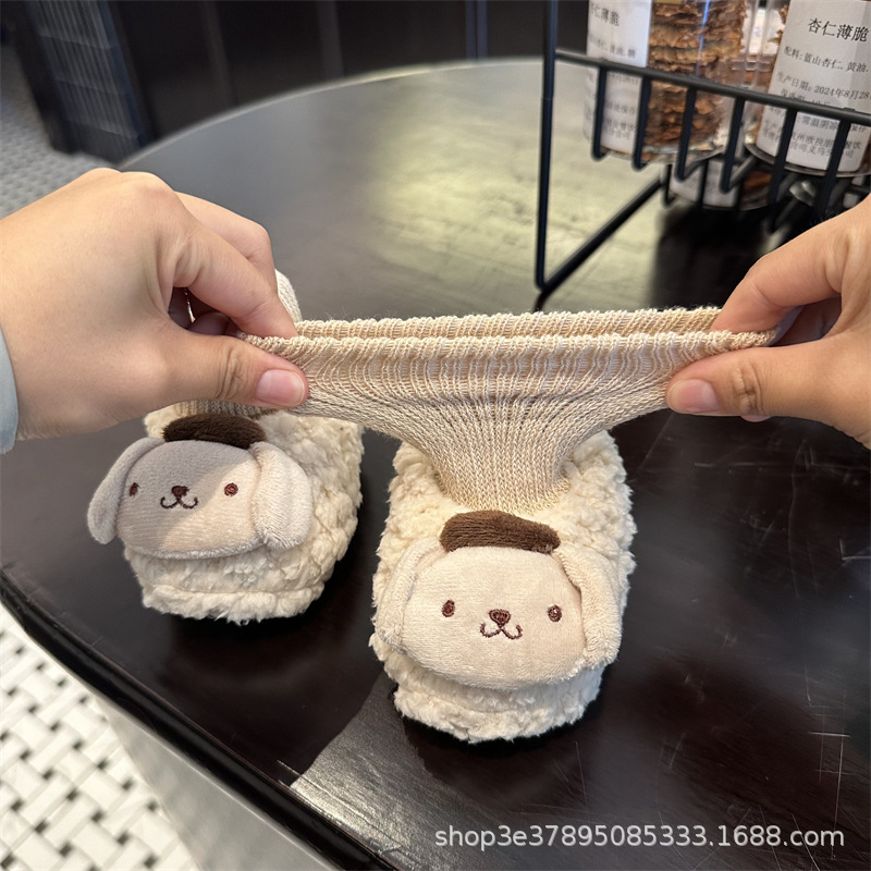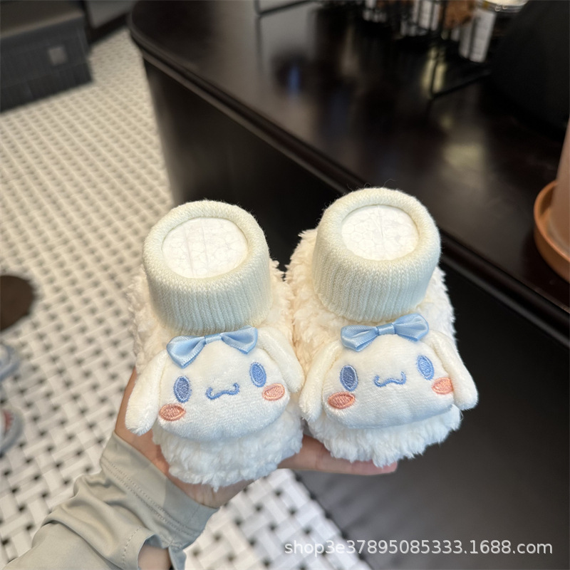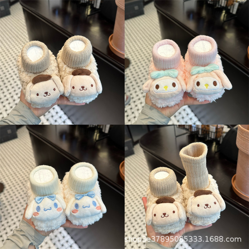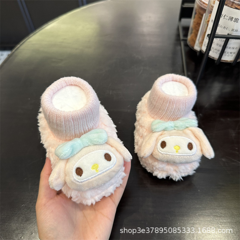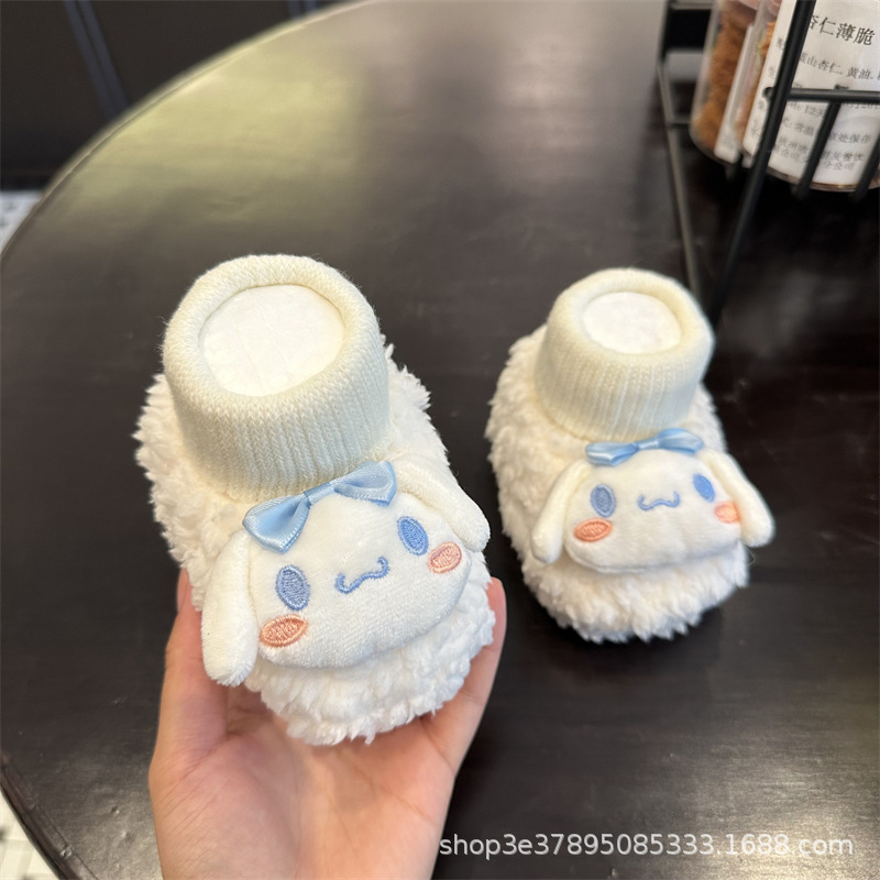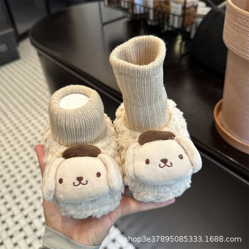 婴儿袜鞋宝宝加厚秋冬软底防掉学步鞋袜套卡通公仔毛绒保暖0-3-12