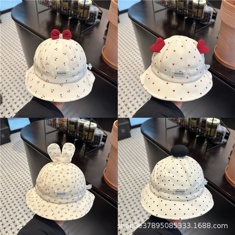 ベビープリンセス帽子ins乳幼児女の子春と秋の薄い盆帽日よけ帽子小月齢かわいい漁師帽