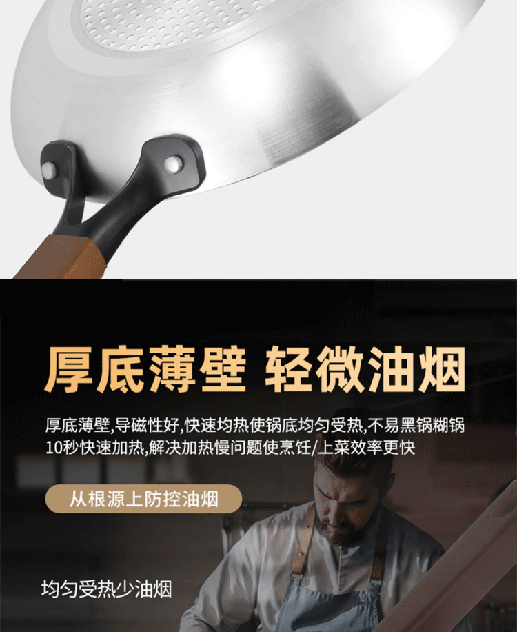食品級厚さ316ステンレス製フライパンは鍋にくっつかない家庭用電磁ストーブはコーティングなしで炒め鍋を深める